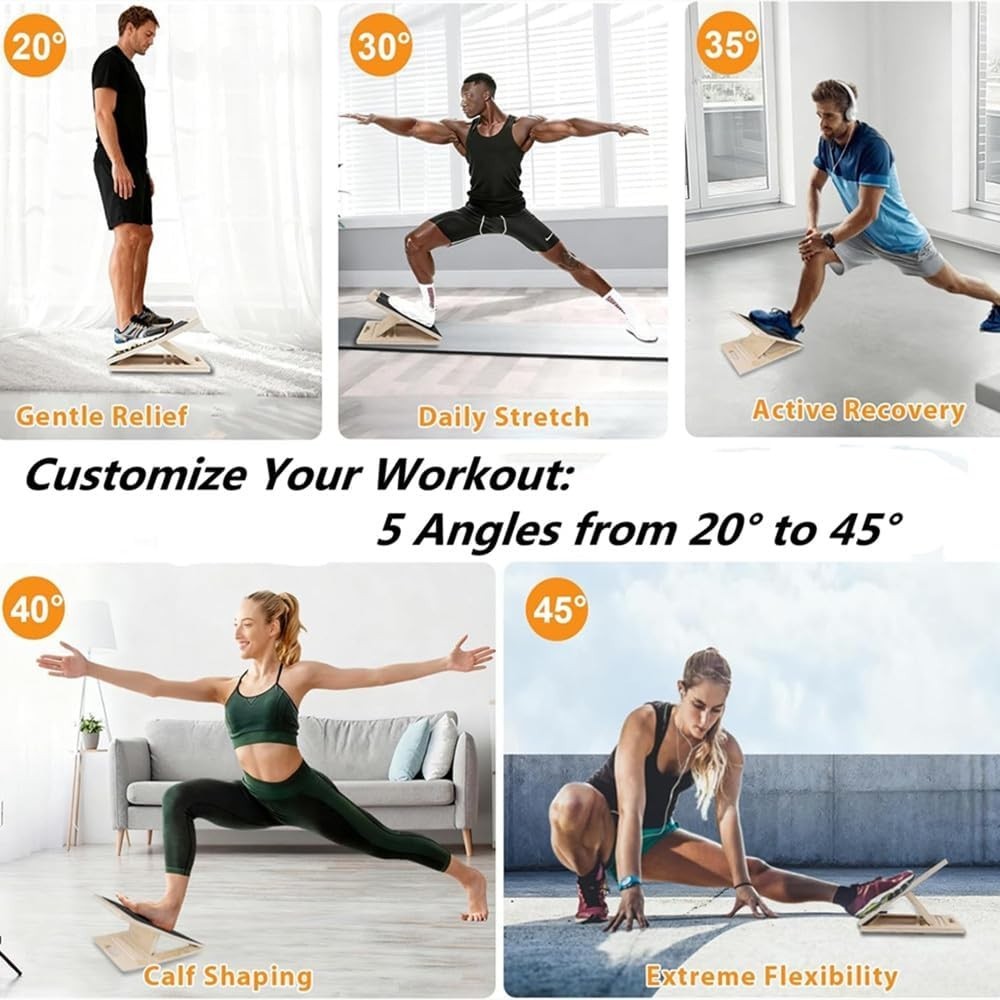 Adjustable Wooden oard for Calf Stretching, Incline Exercise Stretcher for An...