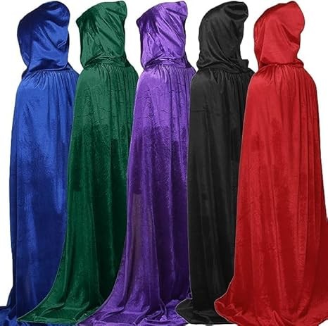 Unisex 59 Black Velvet Hooded Cloak Cape for Halloween Cosplay Costume