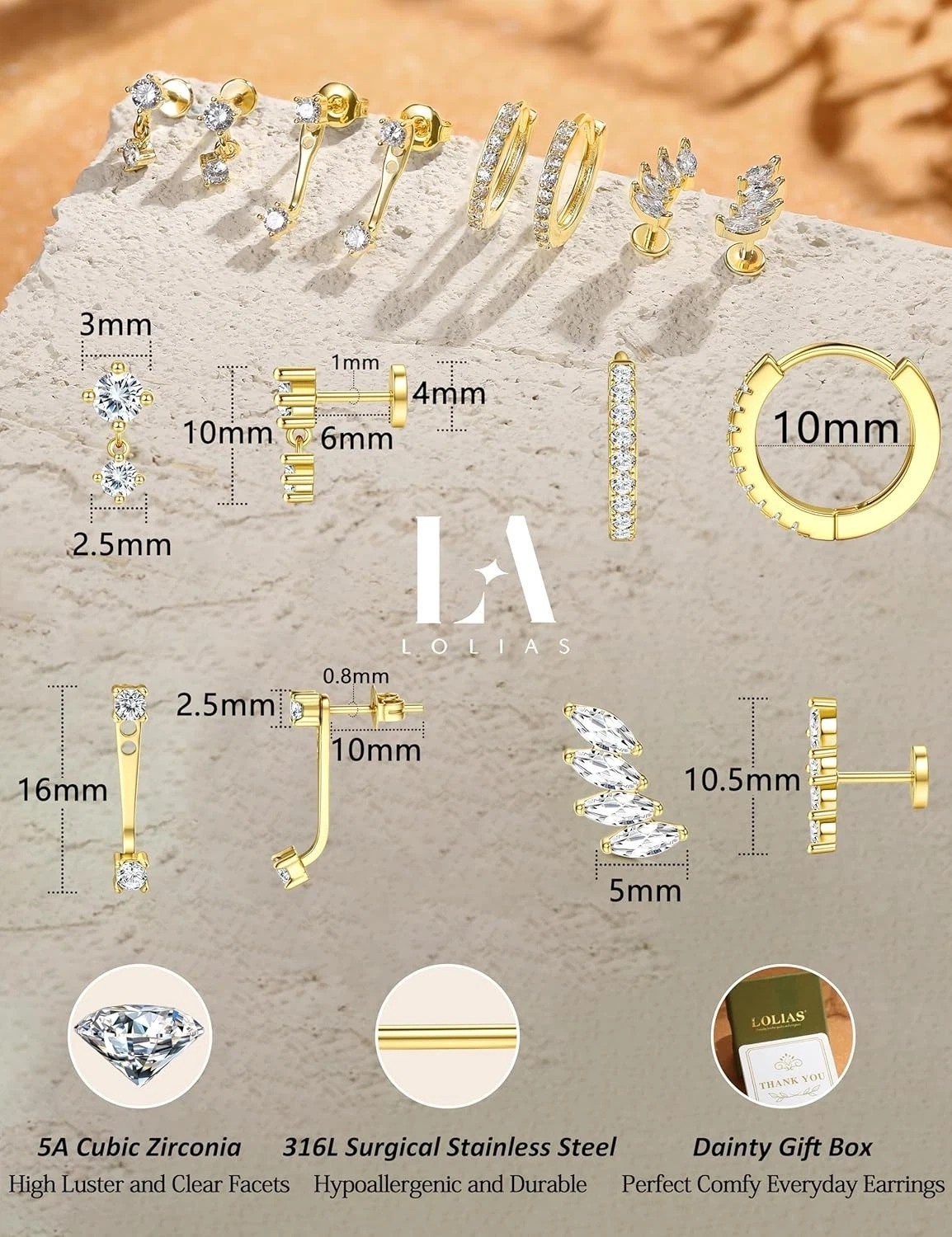 как выглядит 4 Pairs 14K Gold Stud Earrings for Women - Dainty Hypoallergenic Flat Back Carti фото
