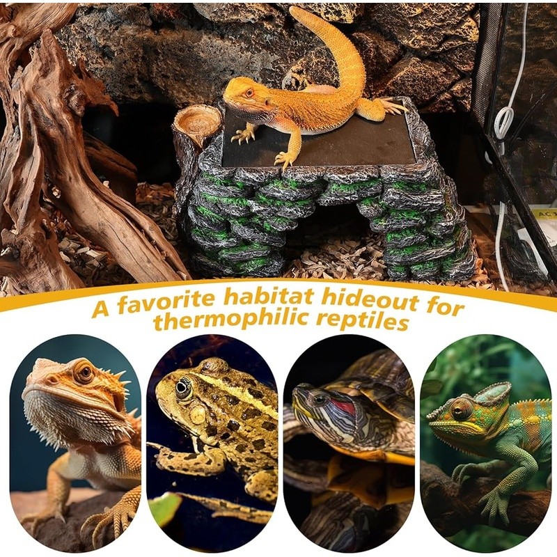 3 in 1 Reptile Basking Platform Natural Slate Hideout Cave Climbing Toy Lizards