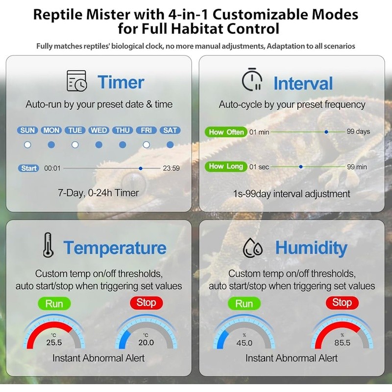 4-in-1 Reptile Misting System Timer Humidity Control 360 Adjustable Nozzles New