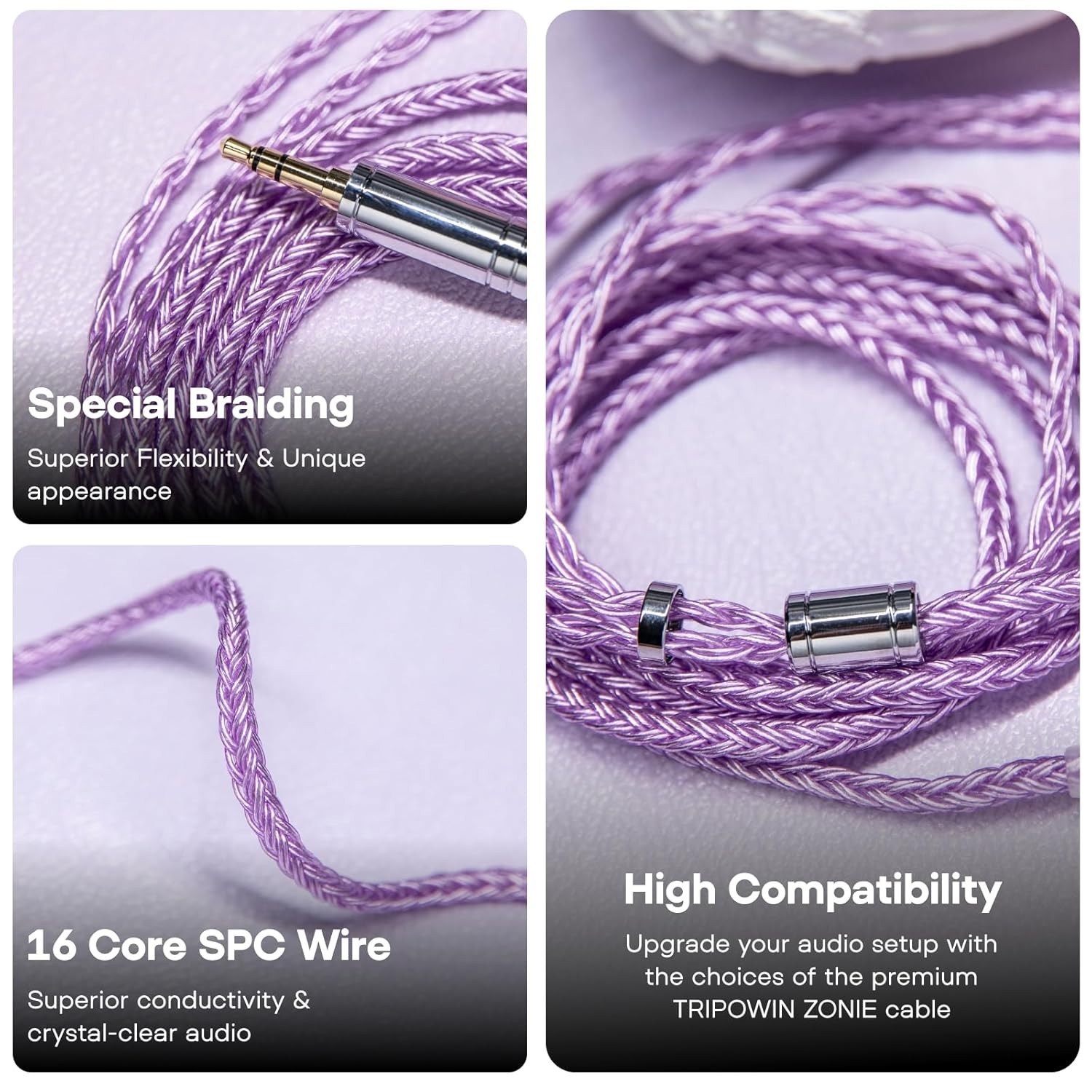High-Performance 16 Core Silver Plated Earphone Cable - Soft Tangle-Free
