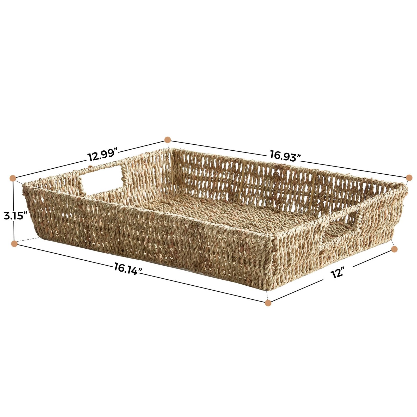 16.93 inch Rectangular Wicker Tray, Hand-Woven Rattan Serving Trays with Hand...