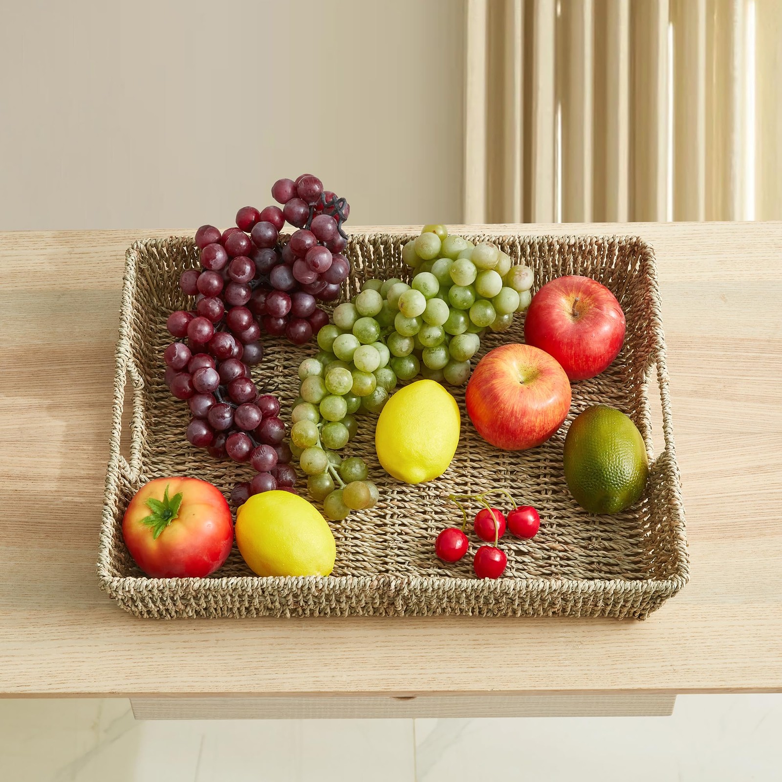 как выглядит 16.93 inch Rectangular Wicker Tray, Hand-Woven Rattan Serving Trays with Hand... фото