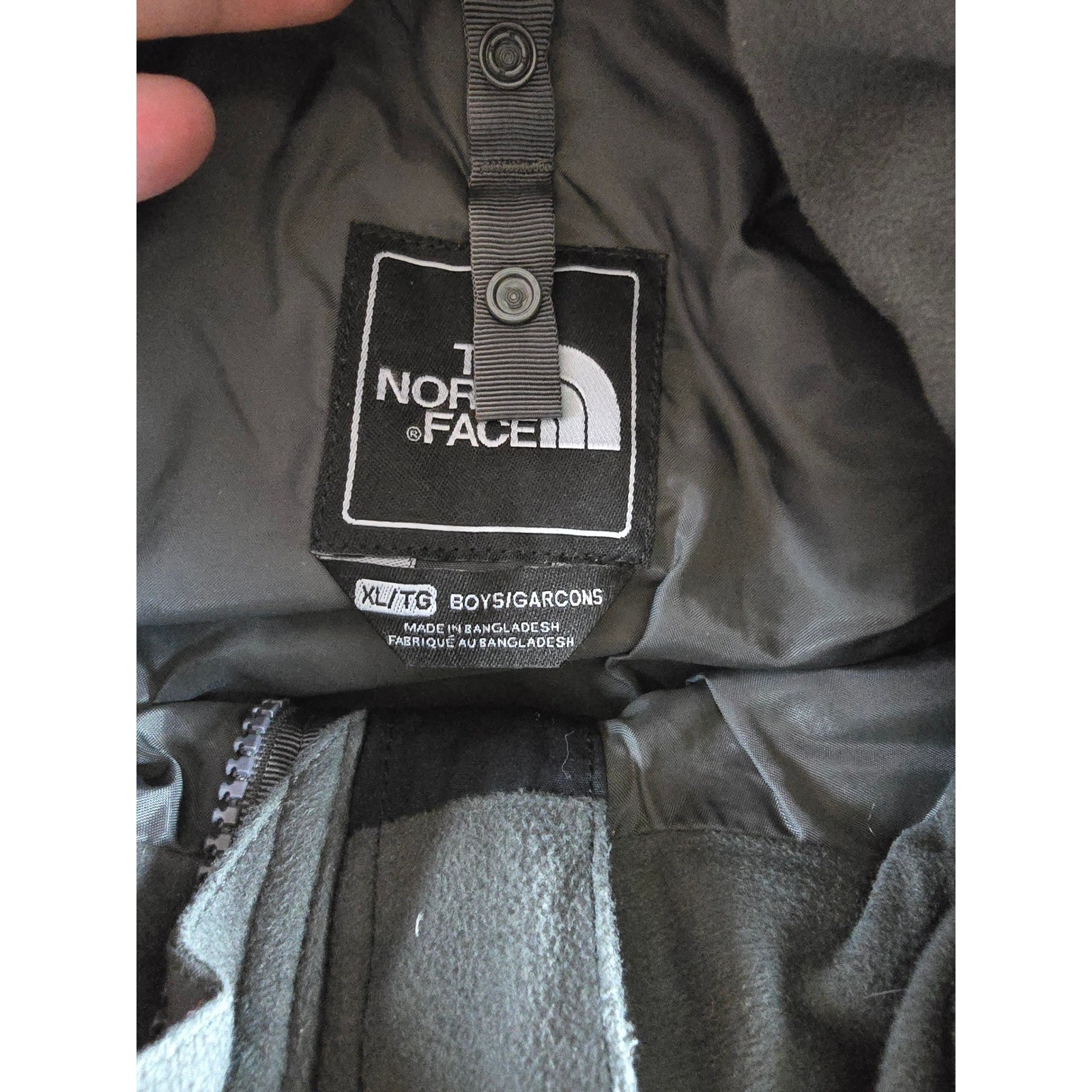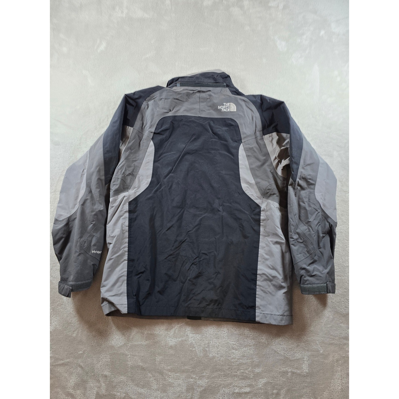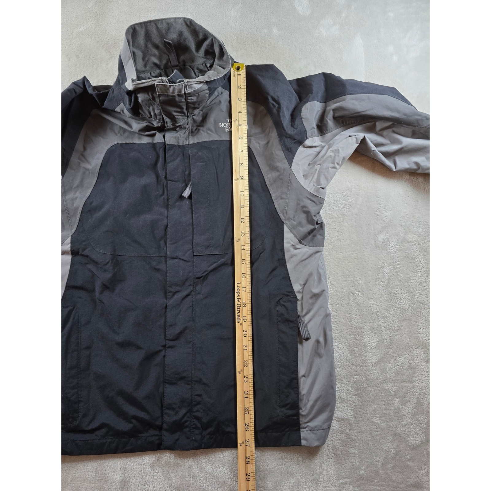 как выглядит The North Face HyVent Jacket Boys XL Gray Black Full Zip Hooded Rain Coat фото