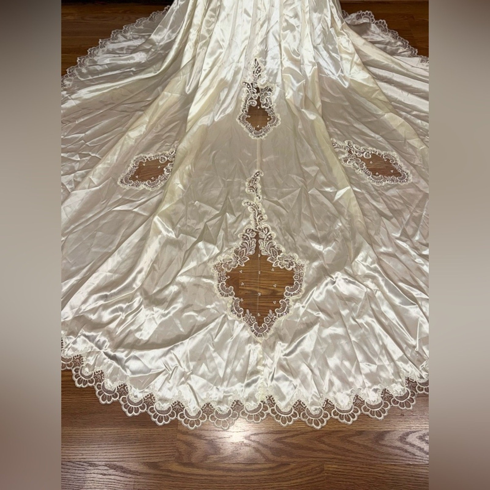как выглядит Stunning Vintage 90s Ivory Satin Mermaid Wedding Gown with Dramatic Train фото
