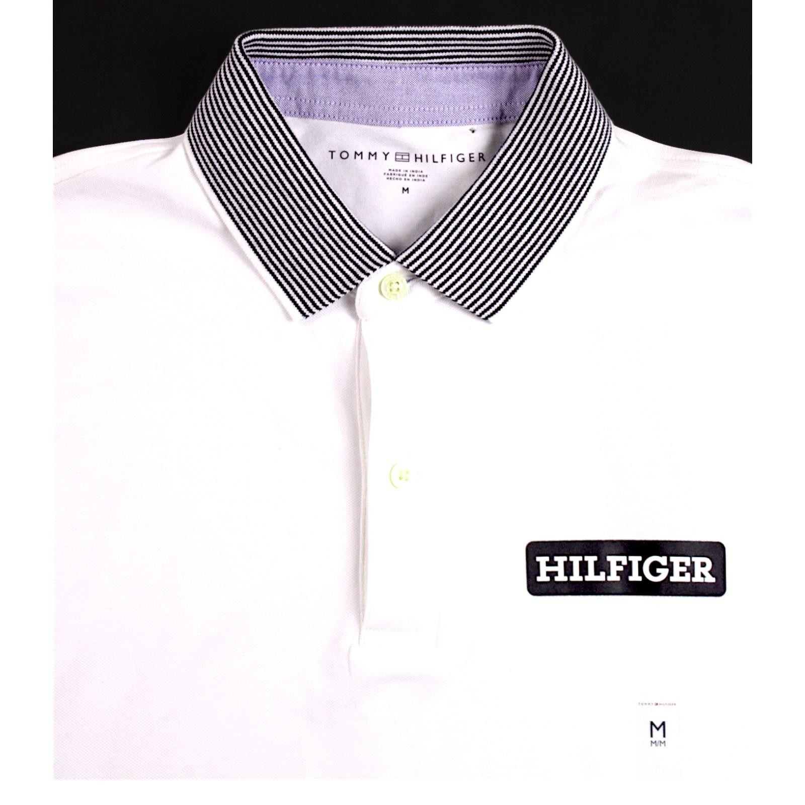Tommy Hilfiger Polo Shirt Mens M White Striped Collar Logo Short Sleeve 70 NEW