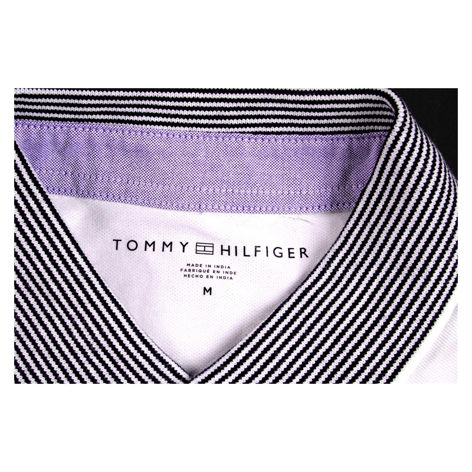 как выглядит Tommy Hilfiger Polo Shirt Mens M White Striped Collar Logo Short Sleeve 70 NEW фото