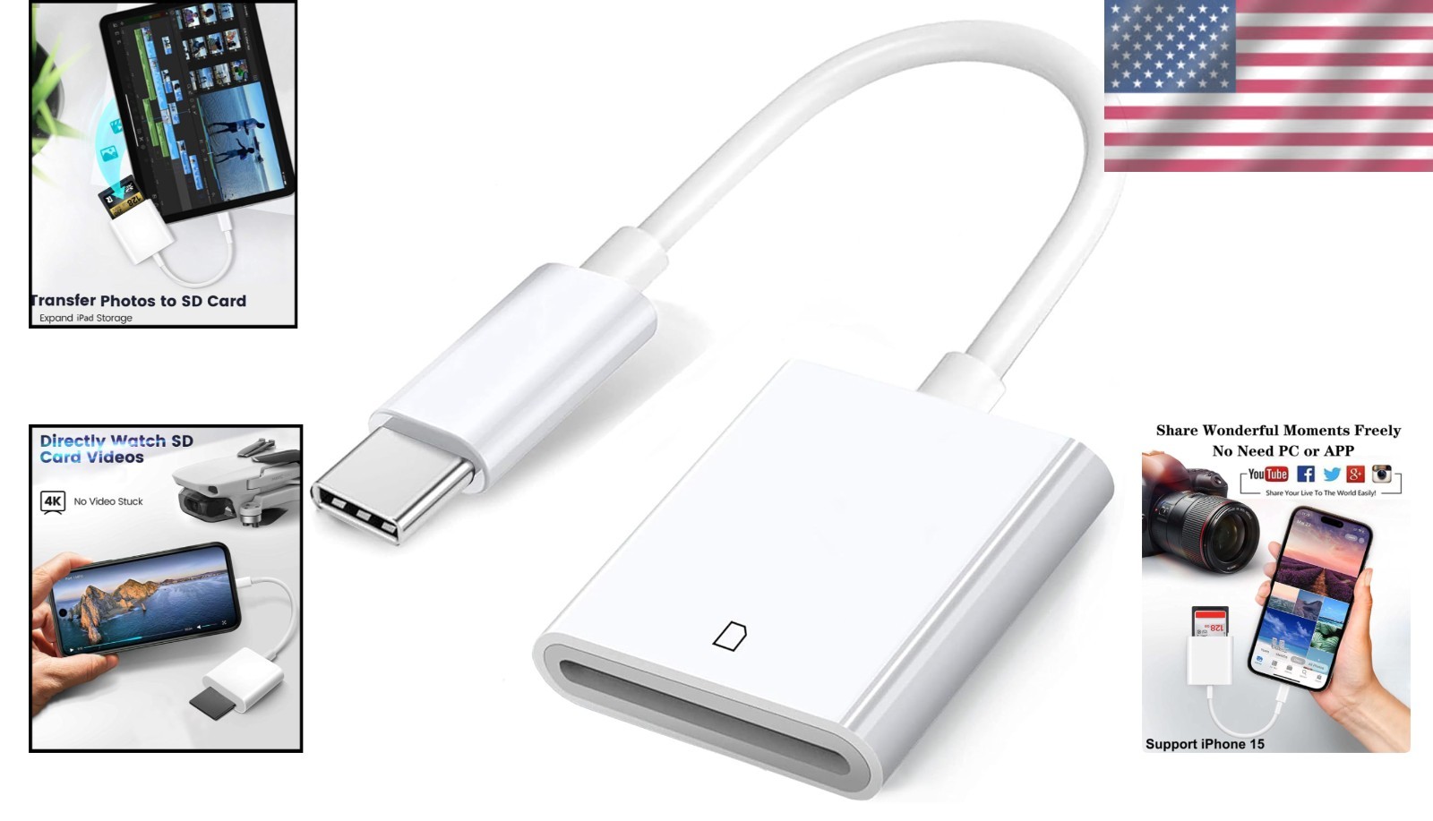 Apple USB-C to SD Card Camera Reader for iPhone 17/16/ 15, MacBook Pro/Air, iPad
