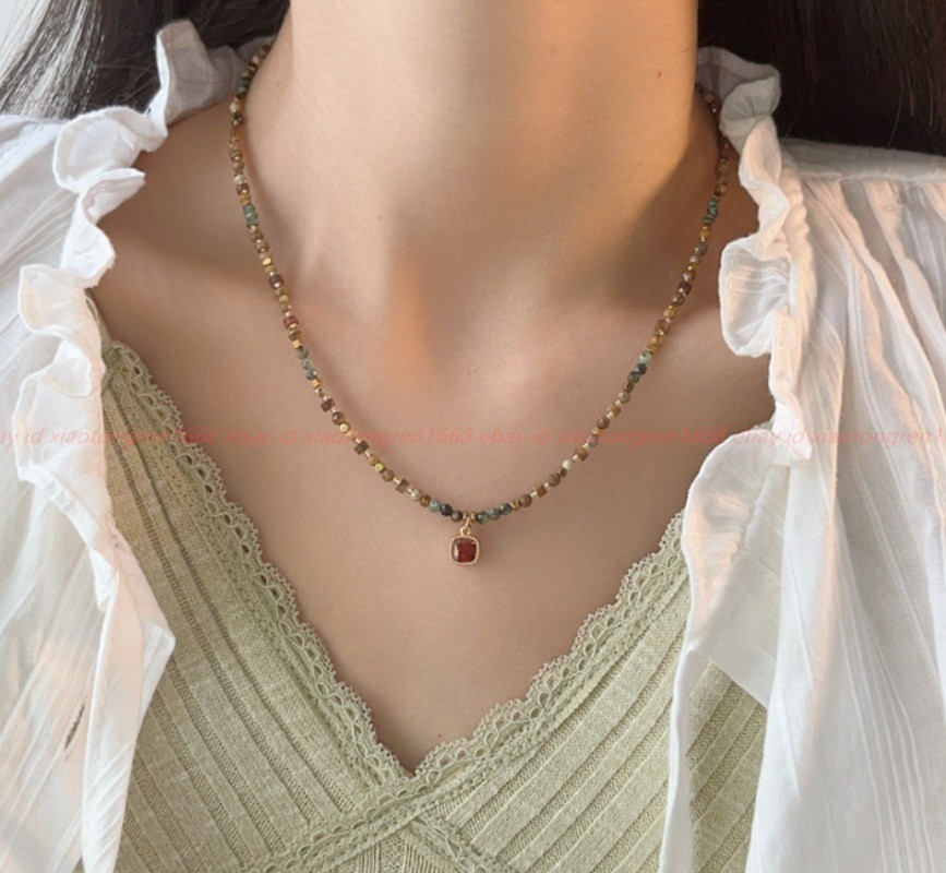 как выглядит Pretty Colorful Natural Stone Natural Shell Tiger Eye Gems Bead Necklace 45 7cm фото