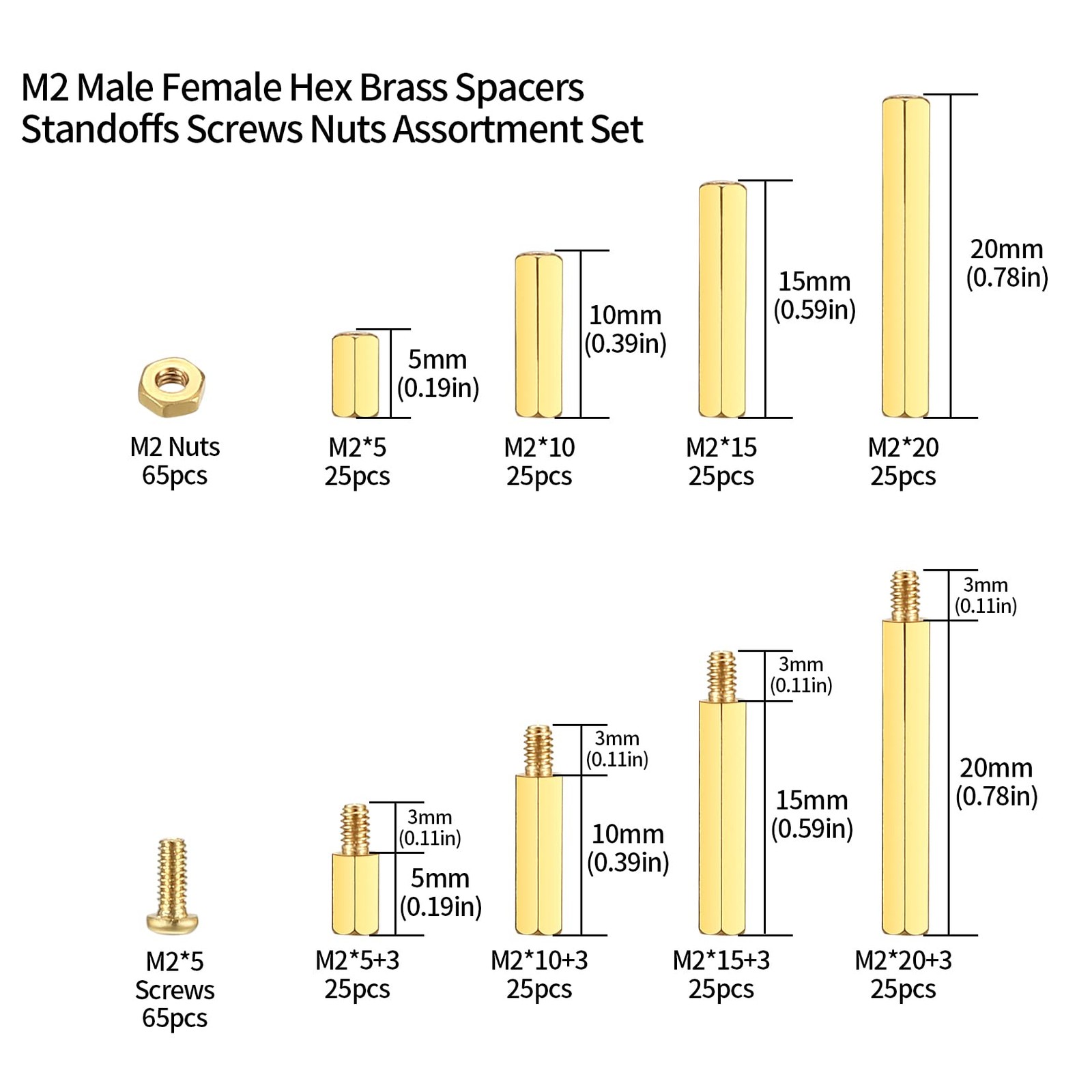 330 Pcs Brass M2 Hex Spacer Standoffs, Screws Nuts Assortment Kit, M2, Gold