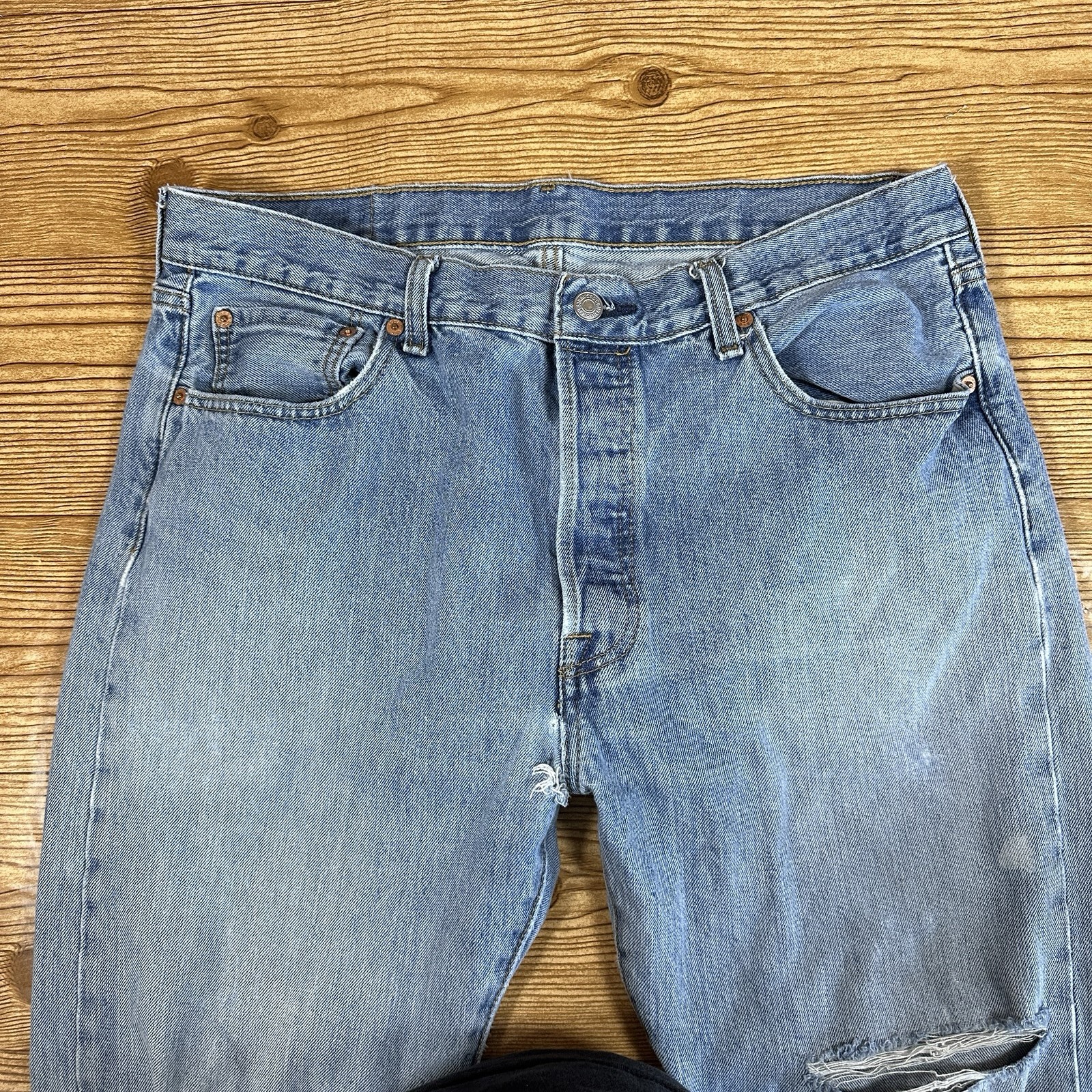 Levis 501 Jeans Mens 36x34 Blue Light Wash Straight Leg Fit Button Fly