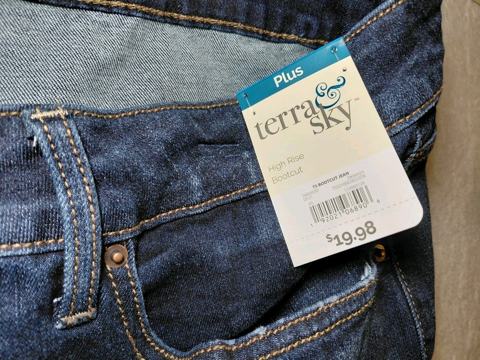 как выглядит Terra Sky Womens Plus Size High Rise Bootcut Stretch Jeans Dark Wash Size 22W фото