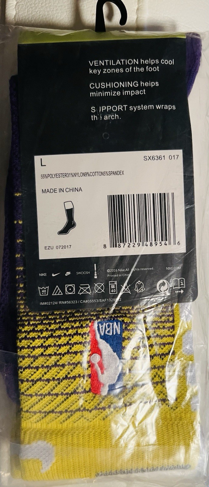 Nike Elite Quick Official NBA Crew Socks 9-13 LG LA Laker Colors New with Tags