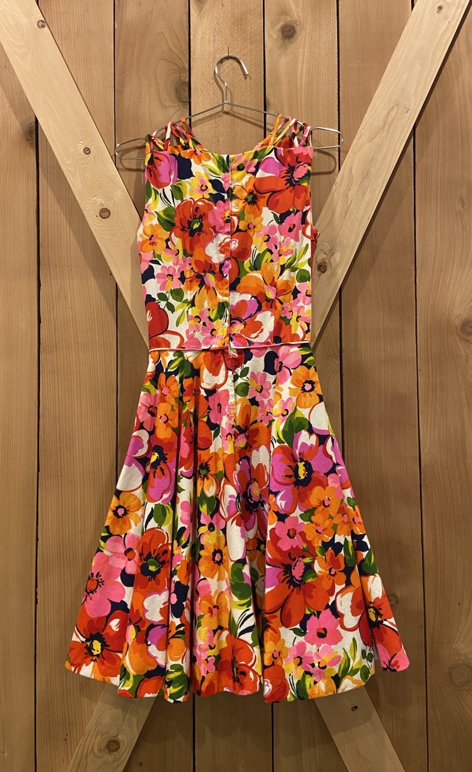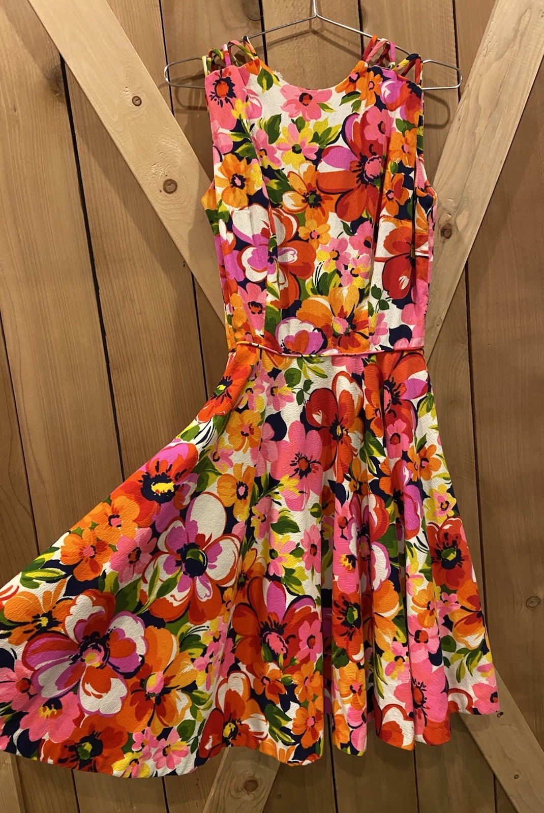 как выглядит Floral Fit Flare Dress Knee Length Sleeveless Multicolor Cotton Crepe фото