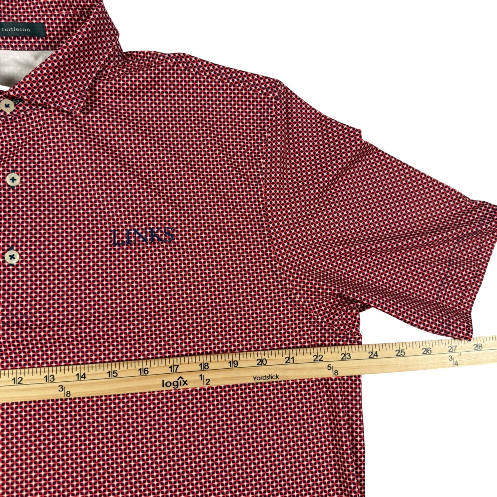 Turtleson Mens Polo Shirt Large Red Geometric Print Links Golf Performance