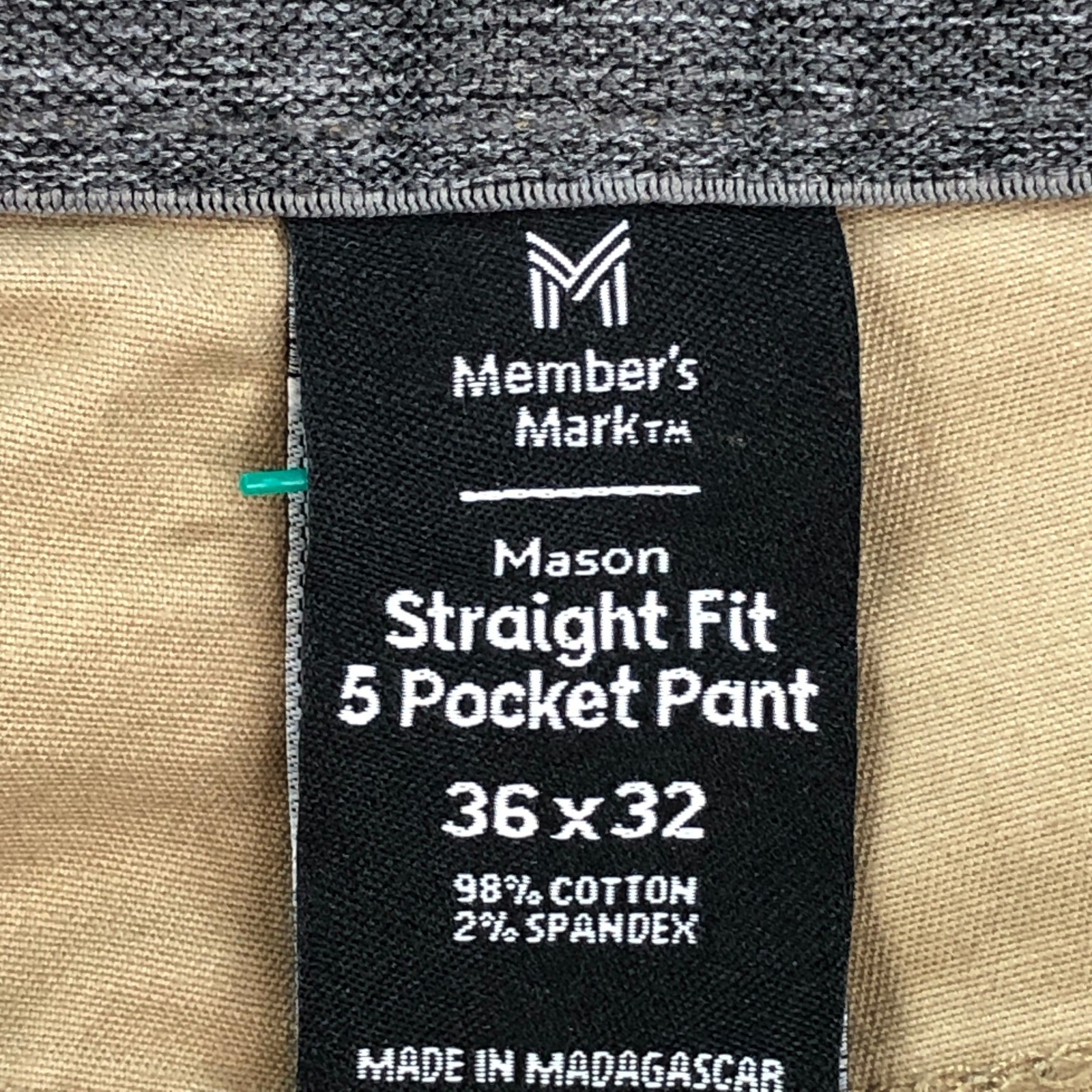 Member's Mark Mason Straight Fit 5 Pocket Pant Mens Chino Pants 36 x 32 Green