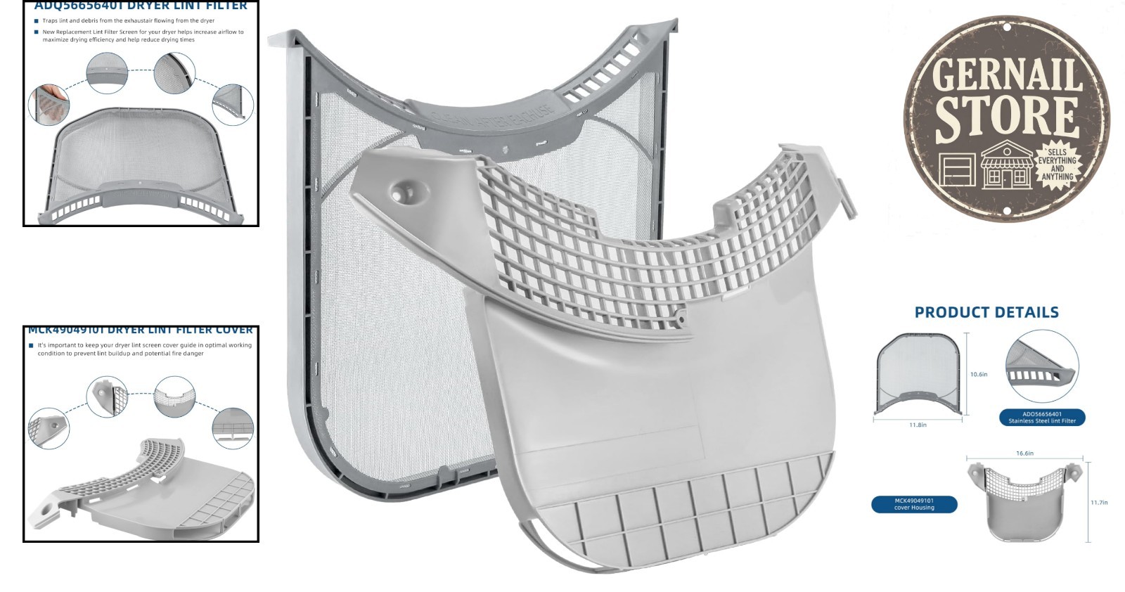 Stainless Steel Dryer Lint Filter Replacement for LG Kenmore - 1- Support
