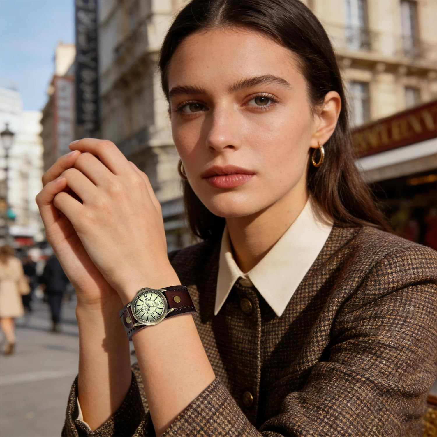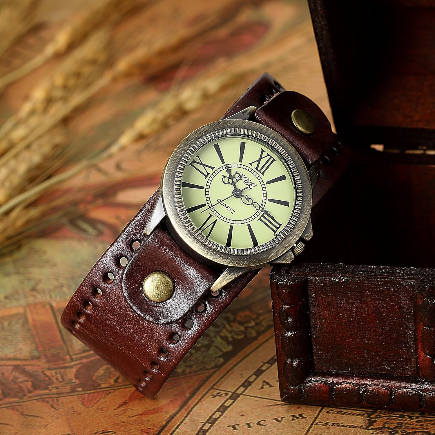 Vintage Wrist Watch Wide Leather Strap Band Cuff Quartz Watches for Men Women Ha