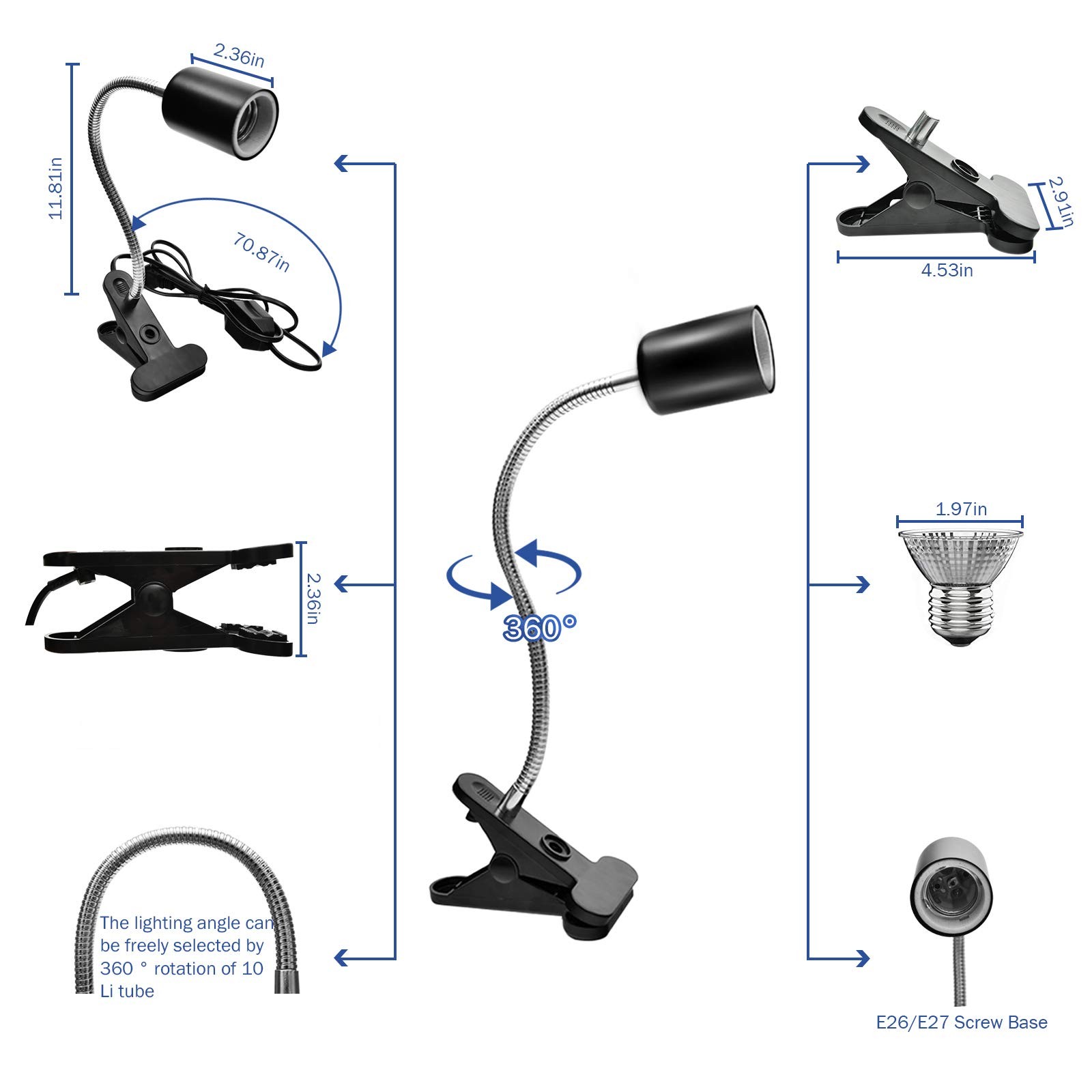как выглядит 2 Pack Reptile Heat Lamps with 360 Rotatable Clips, UVA UVB Spectrum for T... фото