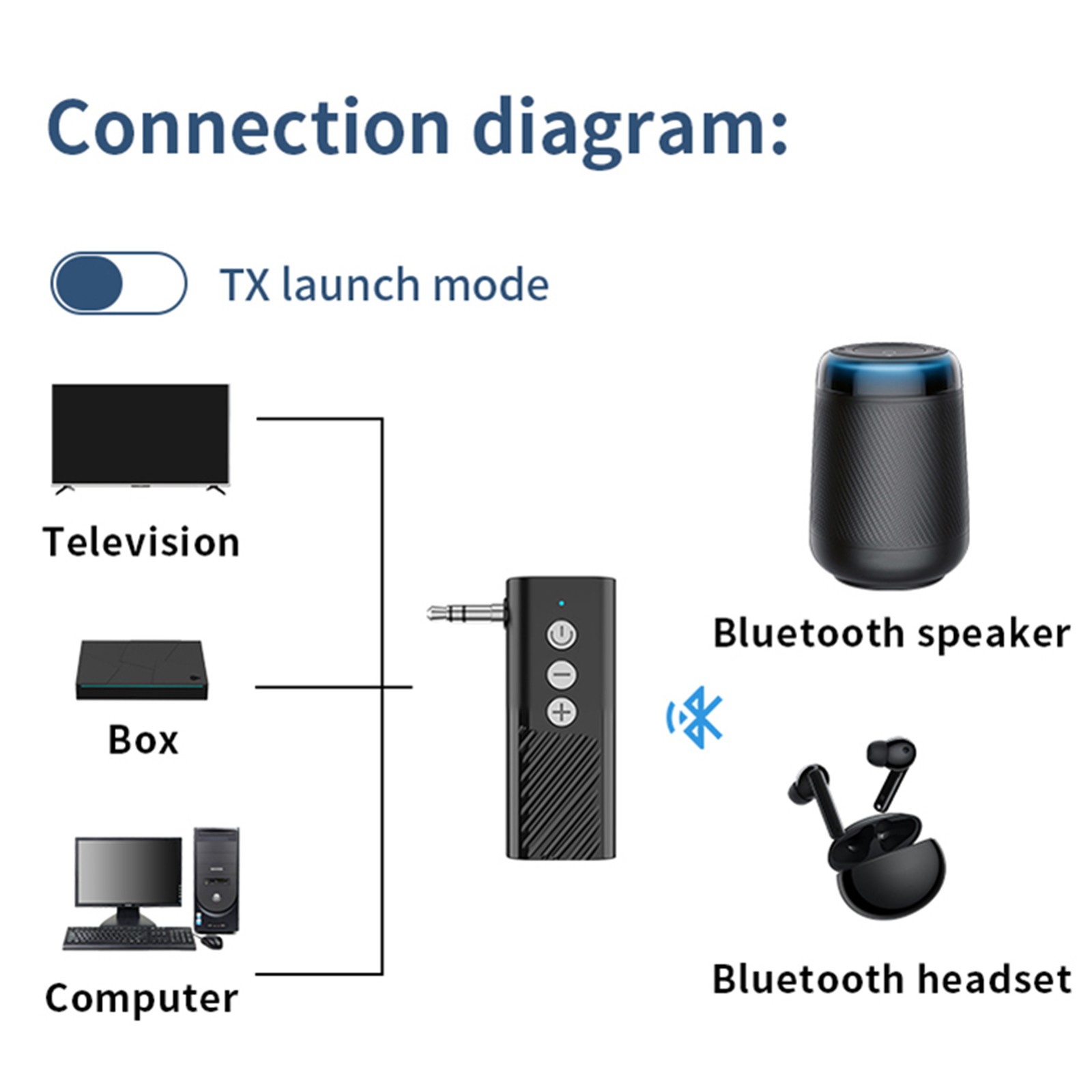 3-in-1 Wireless Bluetooth ABS Black 5.3 Transmitter Receiver Adapter Audio