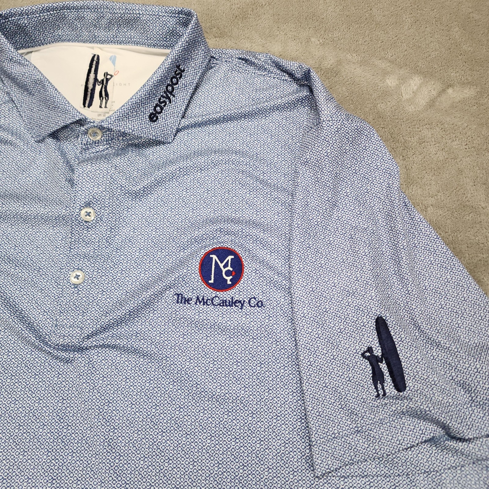 Johnnie O Polo Shirt Mens XL Blue Geometric Short Sleeve Performance Golf Tour