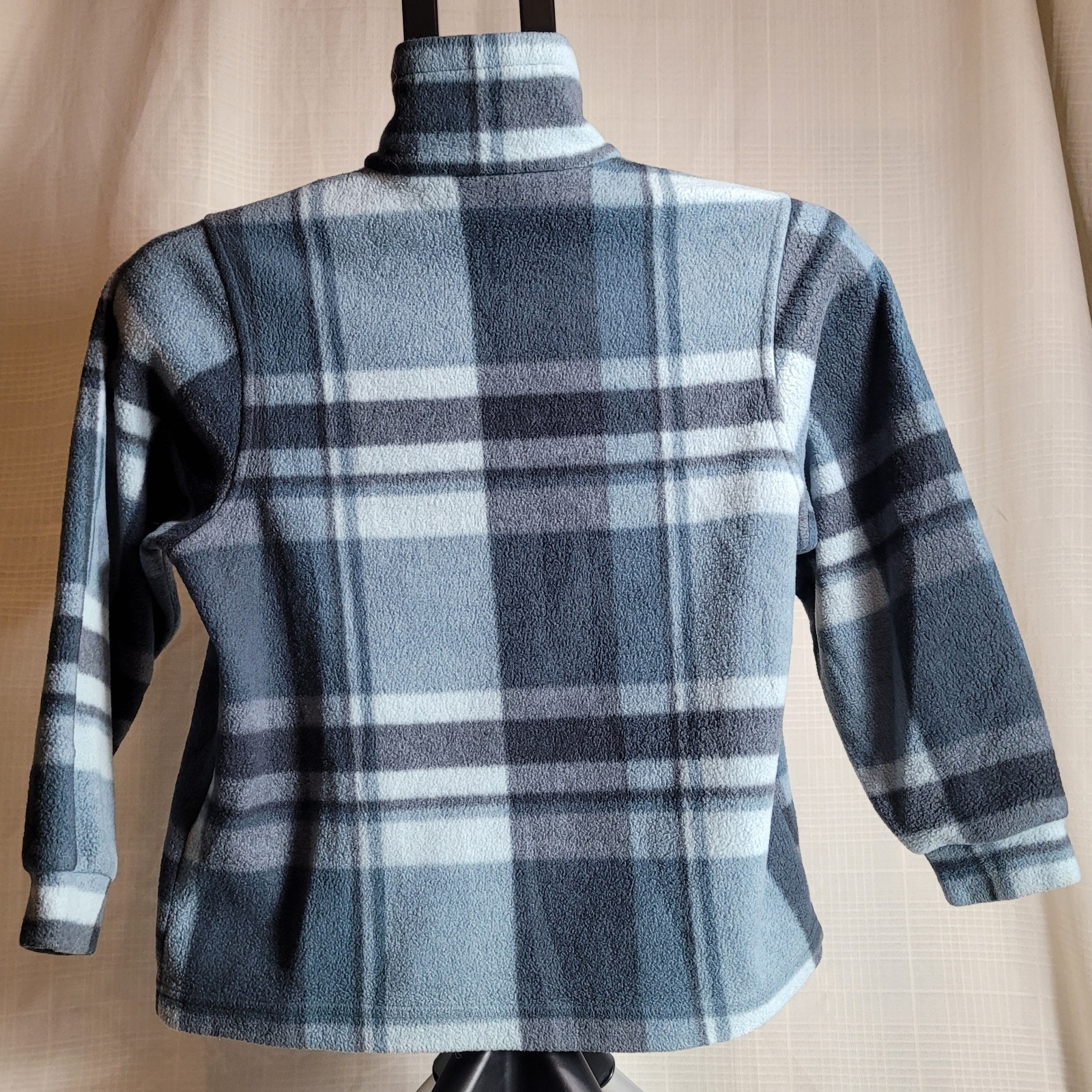 Columbia Boys Size 8 Blue Black Gray Plaid Full Zip Fleece Sweatshirt Jacket