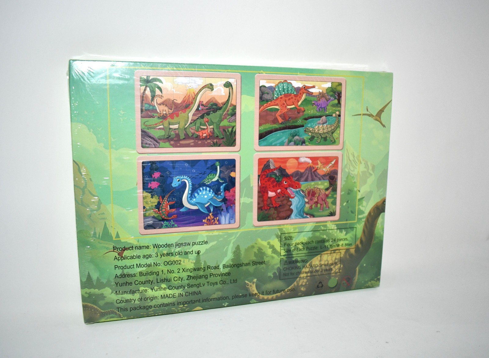 OGYZW Dinosaur Wooden Puzzles for Kids Ages 4 6, 4 Pack, 24 Piece Preschool Jigs