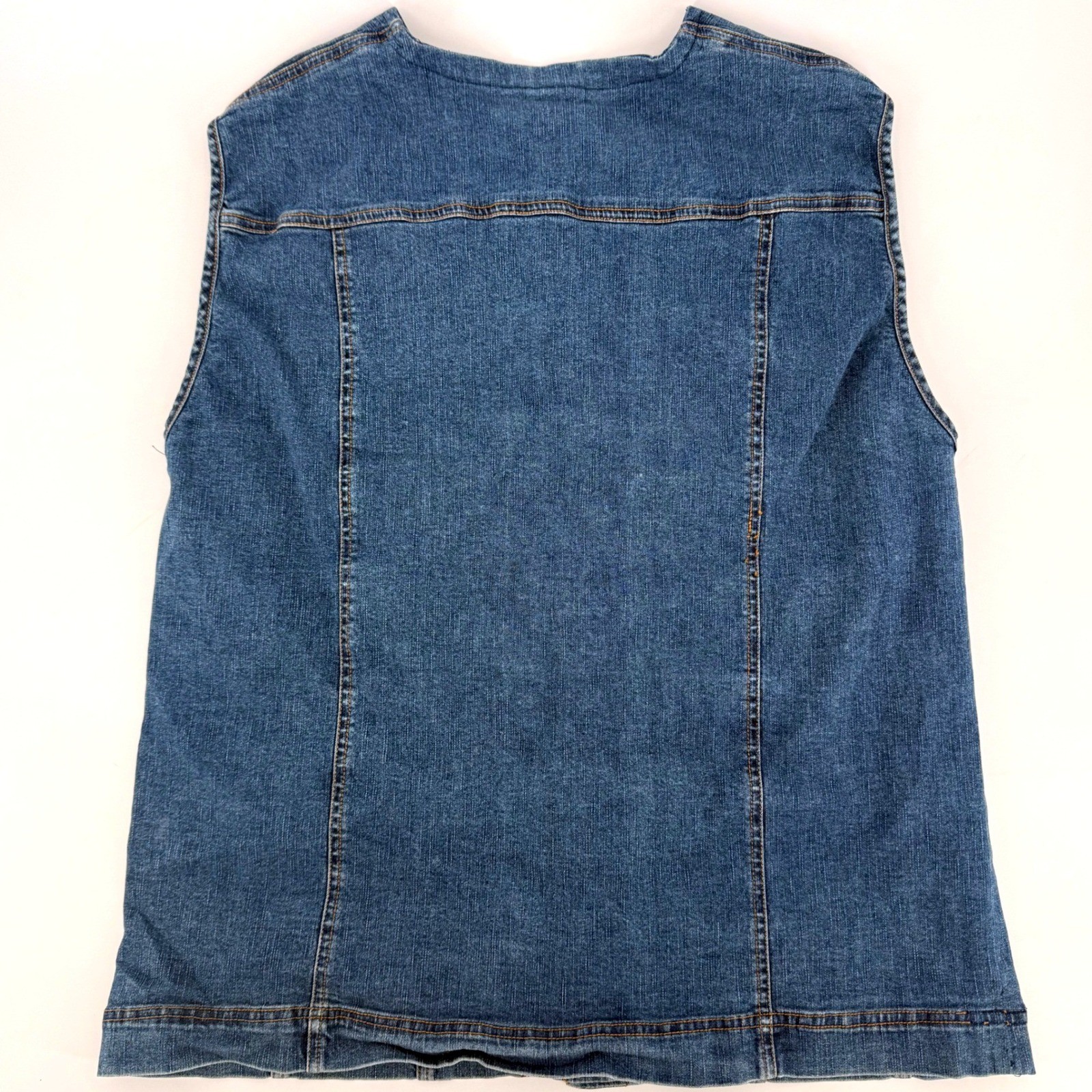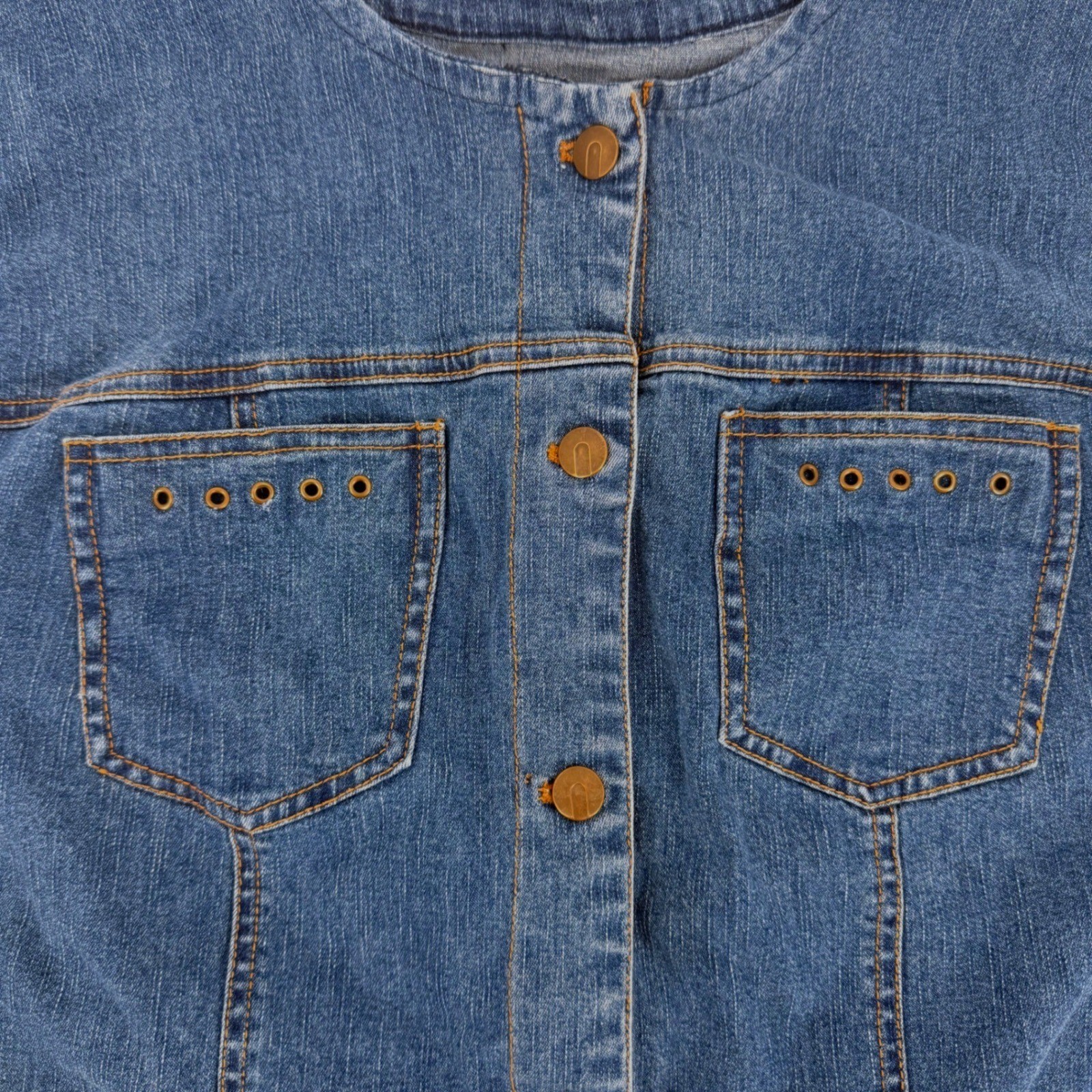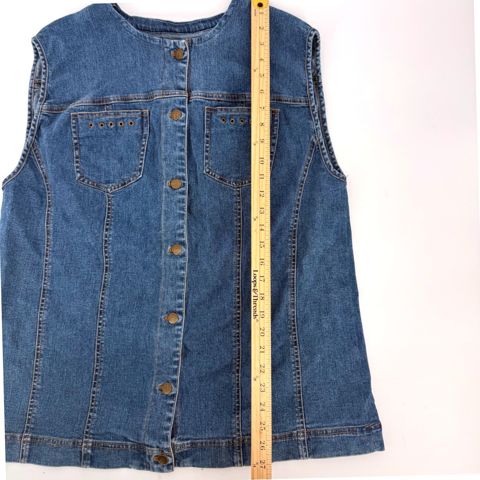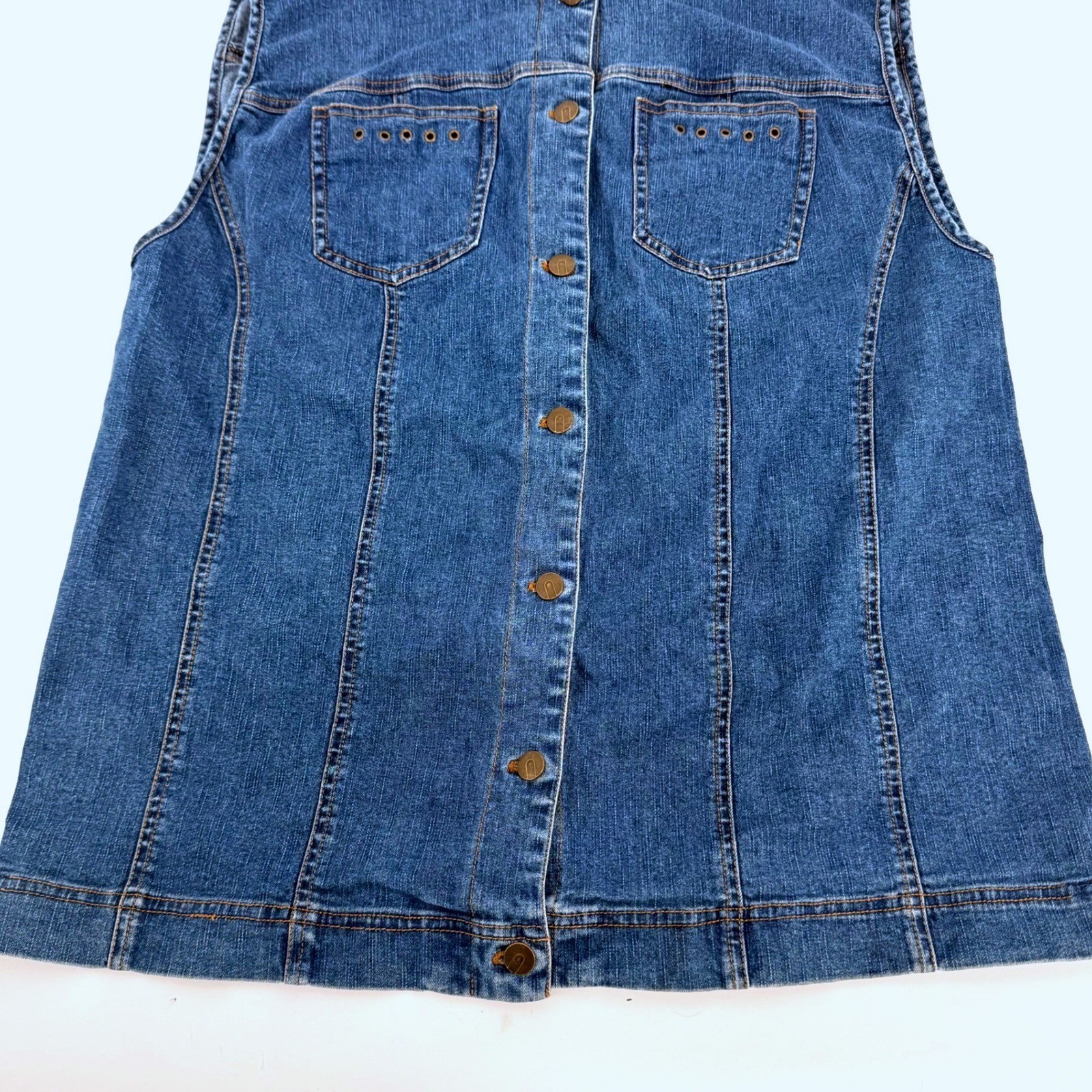 Vintage Blue Denim Vest Sleeveless Button Grommet Medium Wash Indie Western Y2k