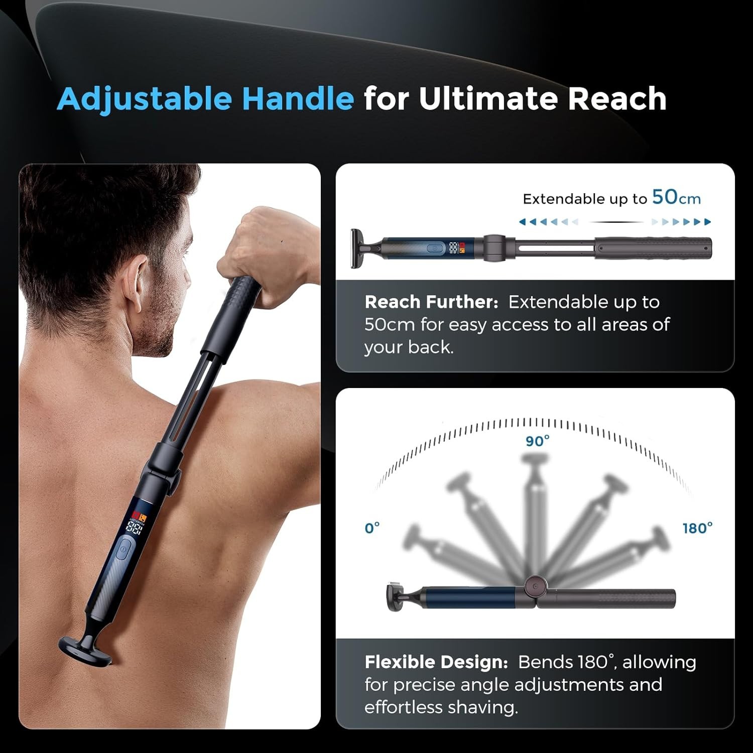 Electric Back Shaver for Men 4-in-1 Grooming Kit with Extendable Handle