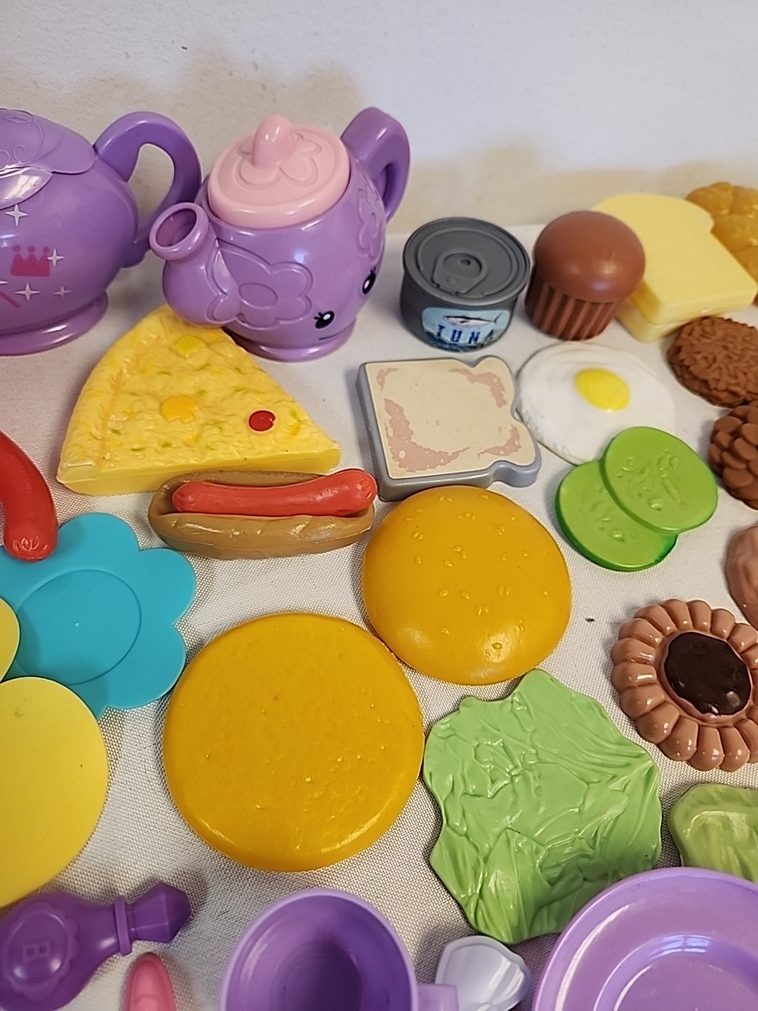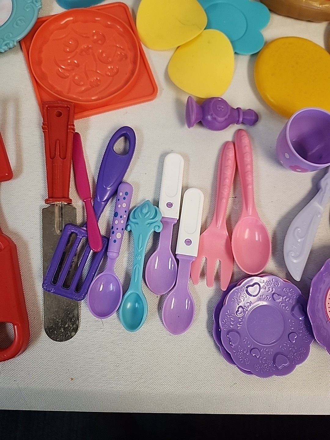 Lot of Kids Pretend Play Toy Food, Dishes, Utensils, Pots, Pans for Kitchen
