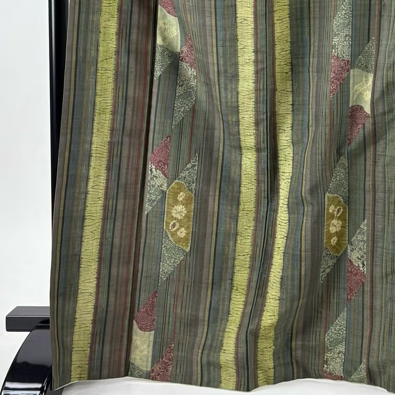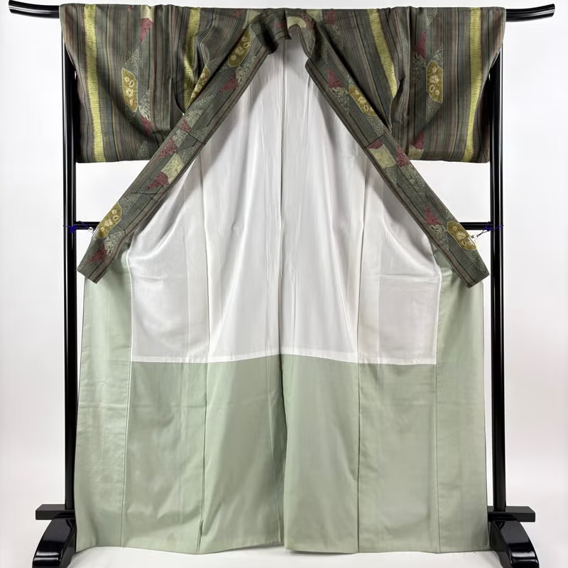 как выглядит JAPANESE KIMONO FINE PATTERN BROWN-GREEN 169.5cm 5 ft 7 in PURE SILK B0343 фото