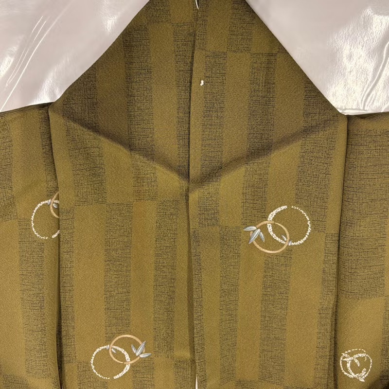 как выглядит JAPANESE KIMONO FINE PATTERN BROWN-GREEN 163cm 5 ft 4 in PURE SILK B0786 фото