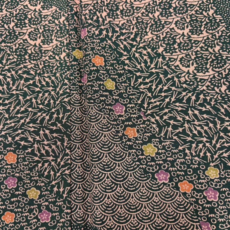 • JAPANESE KIMONO FINE PATTERN BLUE-GREEN 163cm 5 ft 4 in PURE SILK B1013