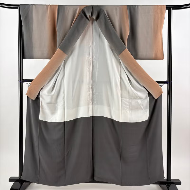 как выглядит JAPANESE KIMONO FINE PATTERN ASH BROWN 162cm 5 ft 4 in PURE SILK B1280 фото