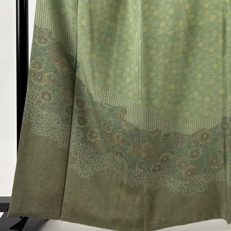 • JAPANESE KIMONO FINE PATTERN GREEN 161.5cm 5 ft 4 in PURE SILK B1277