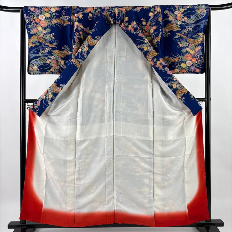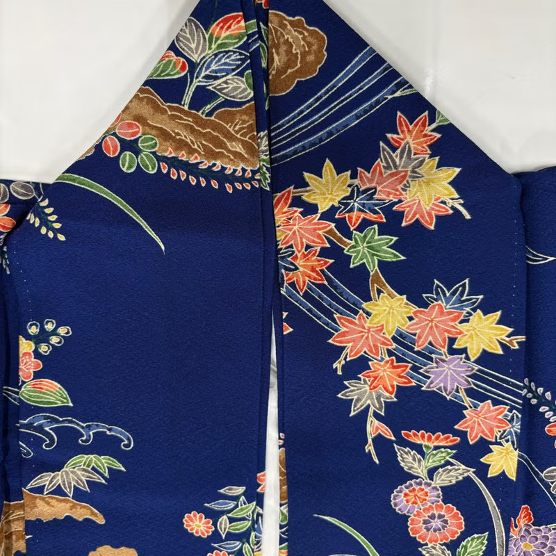 как выглядит JAPANESE KIMONO FINE PATTERN DARK BLUE 159.5cm 5 ft 3 in PURE SILK B1326 фото