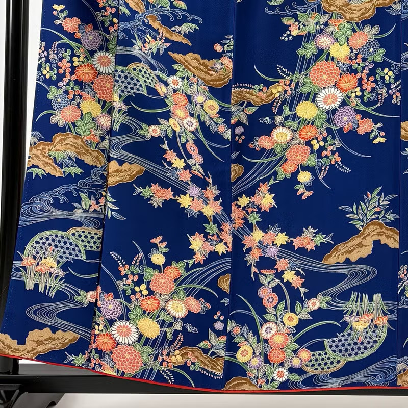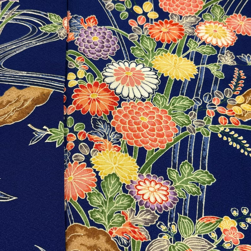 • JAPANESE KIMONO FINE PATTERN DARK BLUE 159.5cm 5 ft 3 in PURE SILK B1326