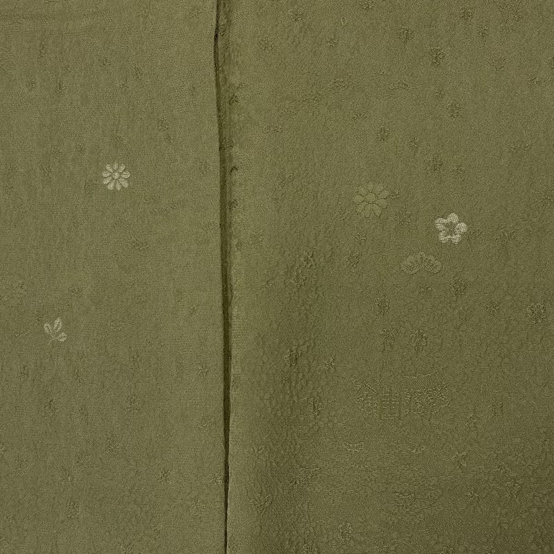 • JAPANESE KIMONO FINE PATTERN GRAY-GREEN 152.5cm 5 ft 0 in PURE SILK B1693