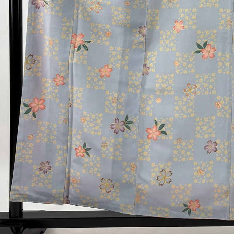 как выглядит JAPANESE KIMONO FINE PATTERN BLUE-GRAY 160cm 5 ft 3 in PURE SILK B2198 фото