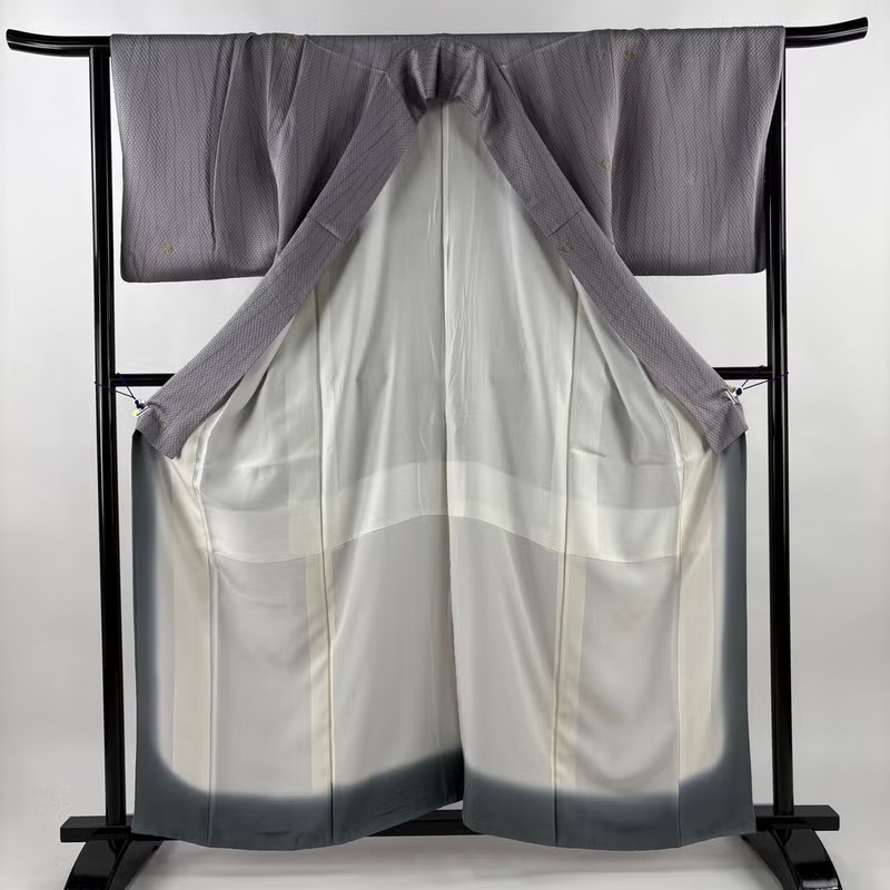 как выглядит JAPANESE KIMONO FINE PATTERN LIGHT PURPLE 161.5cm 5 ft 4 in PURE SILK B2945 фото