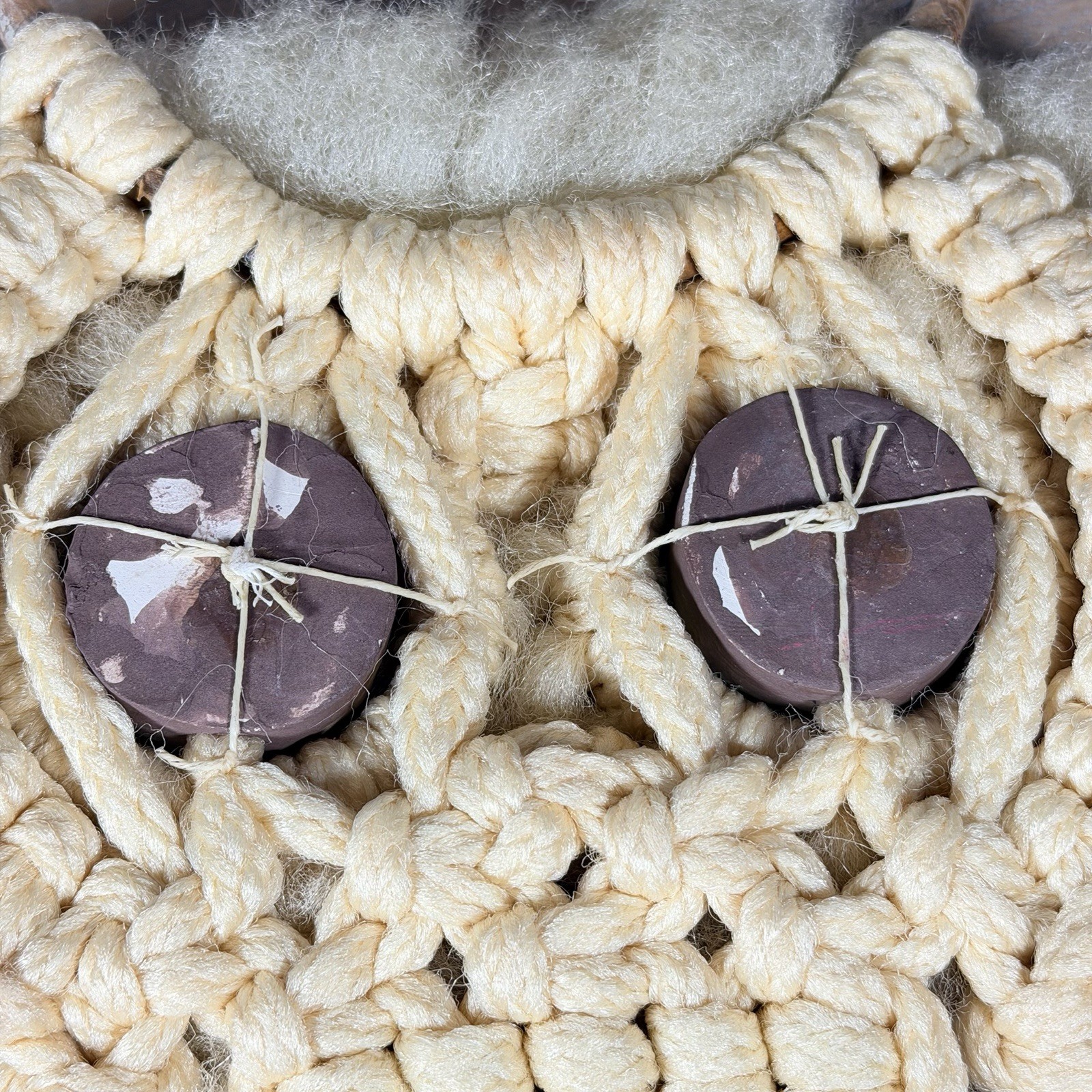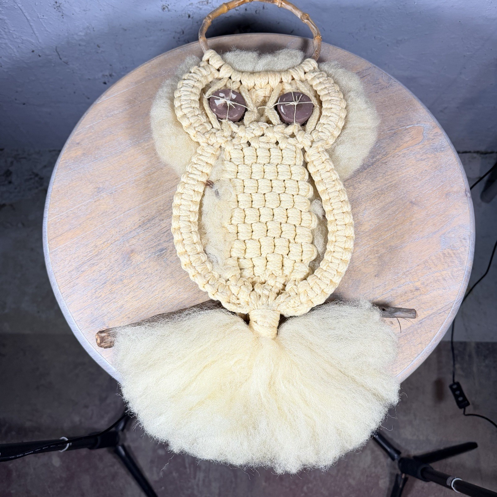 • Vintage 70s Macrame Owl Wall Hanging Towel Ring Towel Holder With Big Eyes