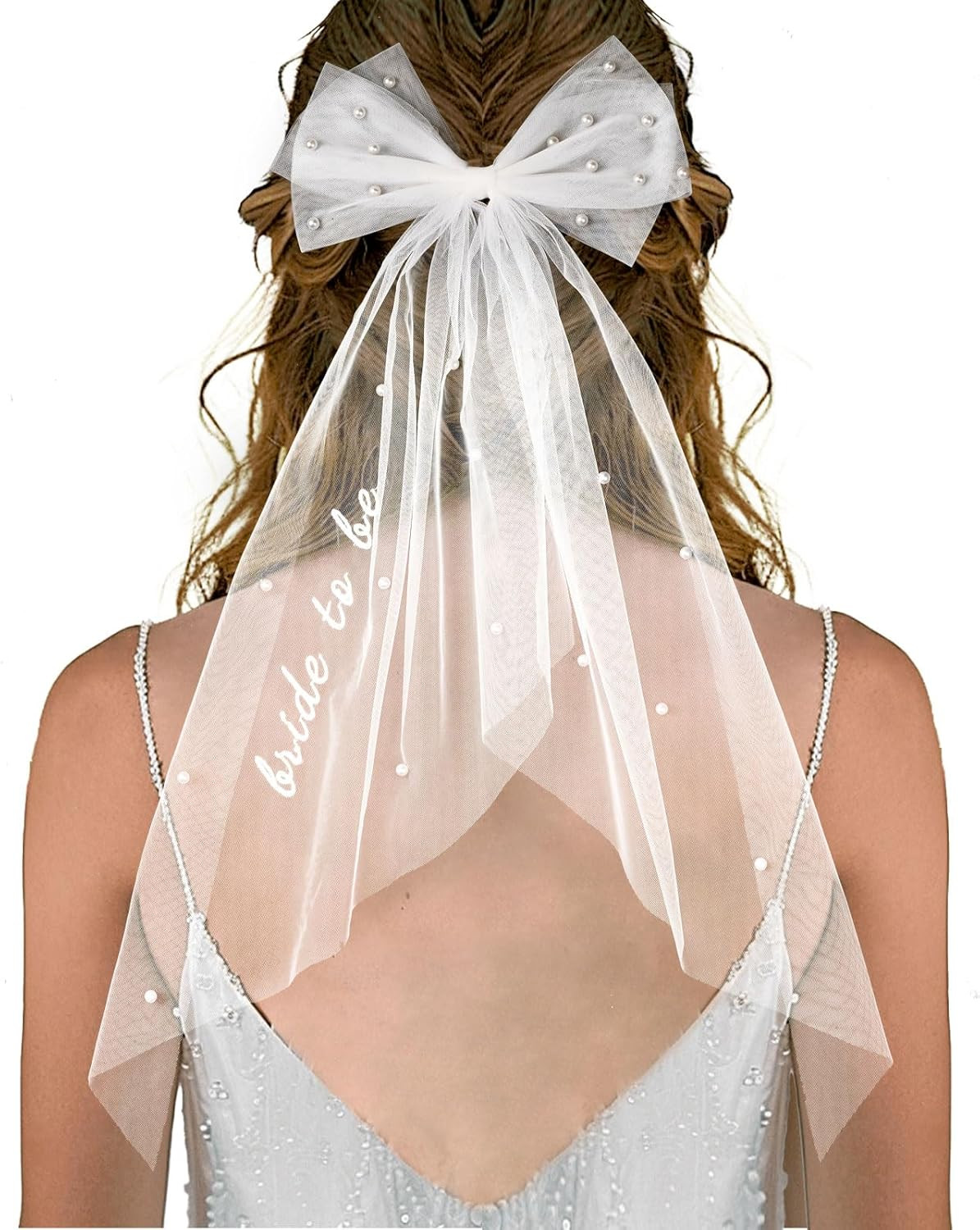 Bride to Be Embroidered Hair Bow Veil for Bachelorette Party Bridal Shower Tulle