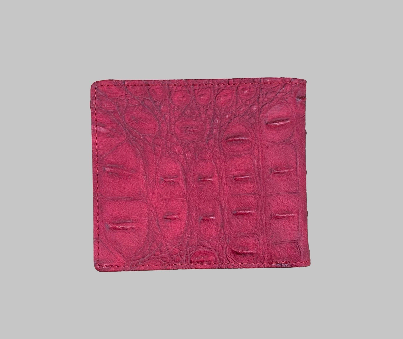 Mint Red Leather Wallet Crocodile Texture Bifold Mens 8 Pocket Slim Holder