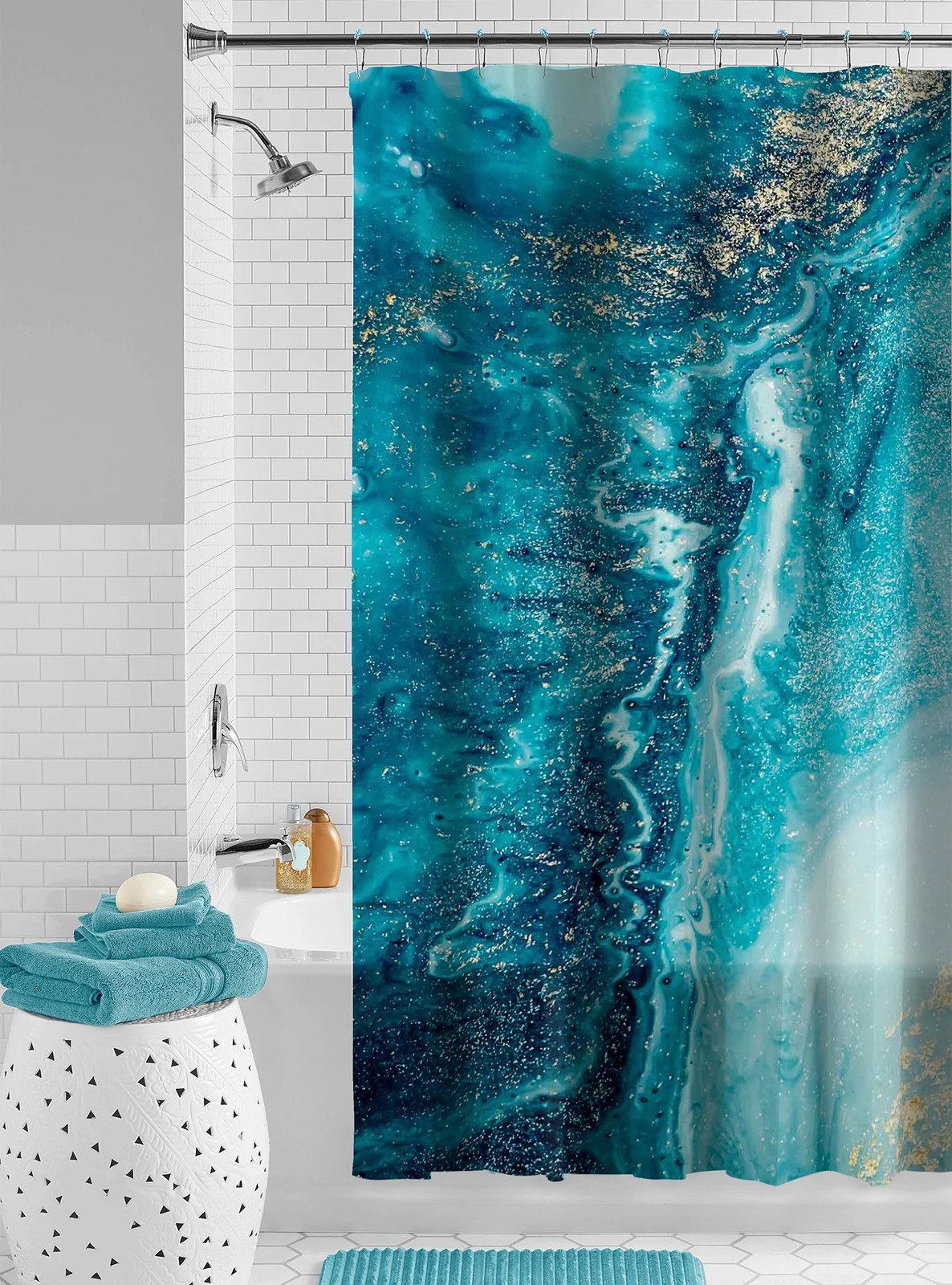 как выглядит Waterproof Watercolor Marble 30 Recycled PEVA Shower Curtain Set Hooks, 13-Pi фото
