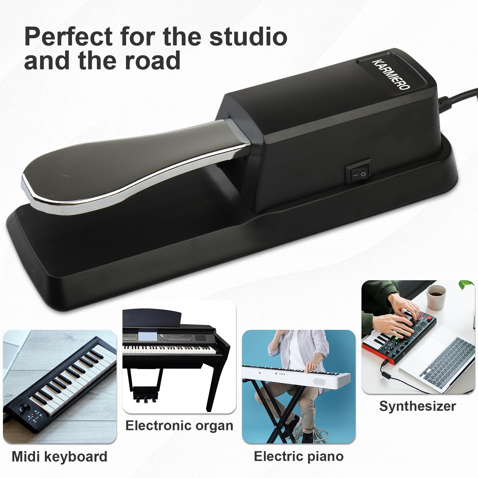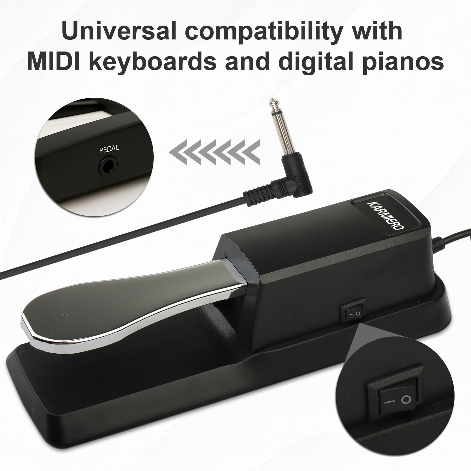 Sustain Pedal for Keyboard Universal, Premium Pedal, Piano Silver