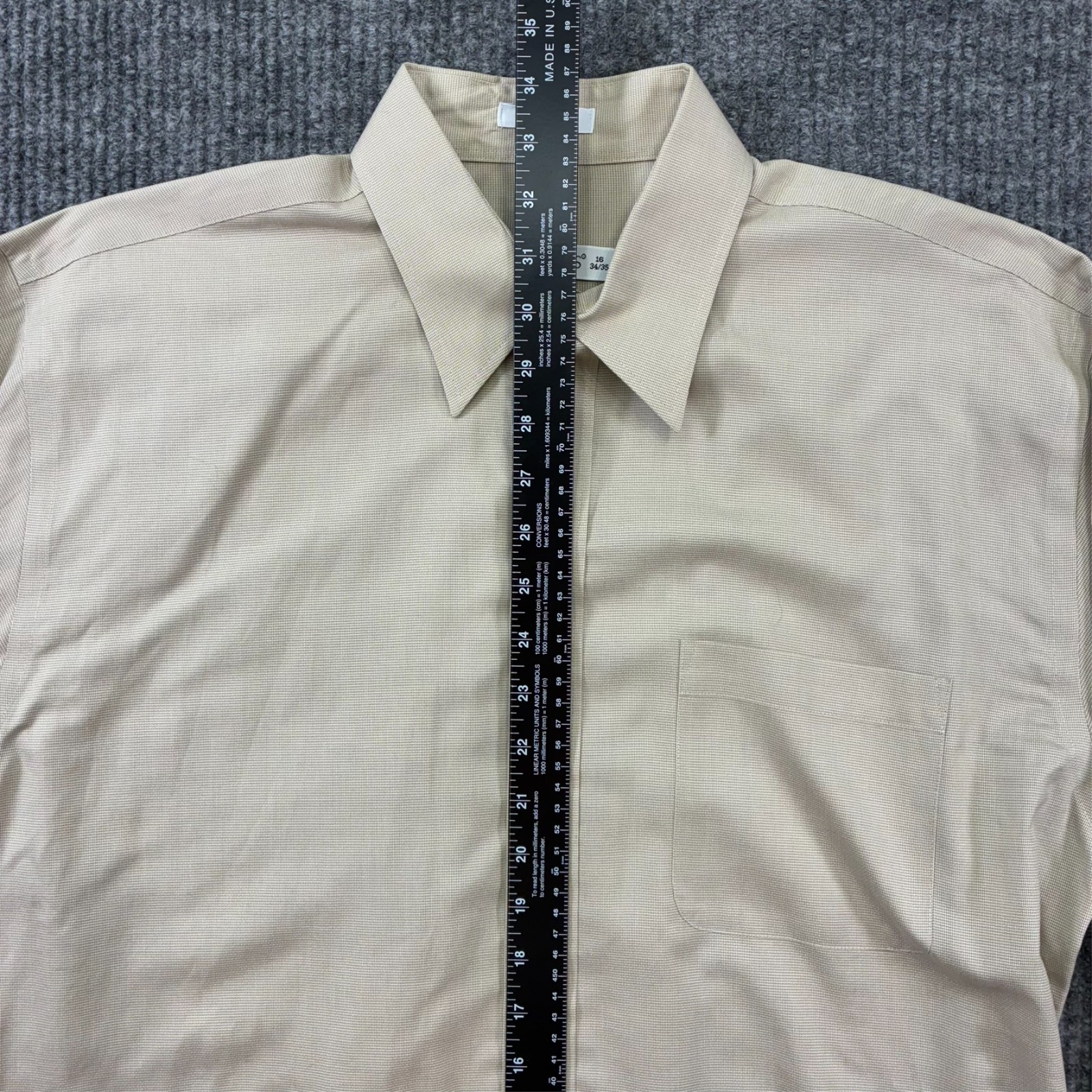 как выглядит Joseph Feiss Mens Dress Shirt Size 16 34/35 Beige Non Iron Cotton Long Sleeve фото