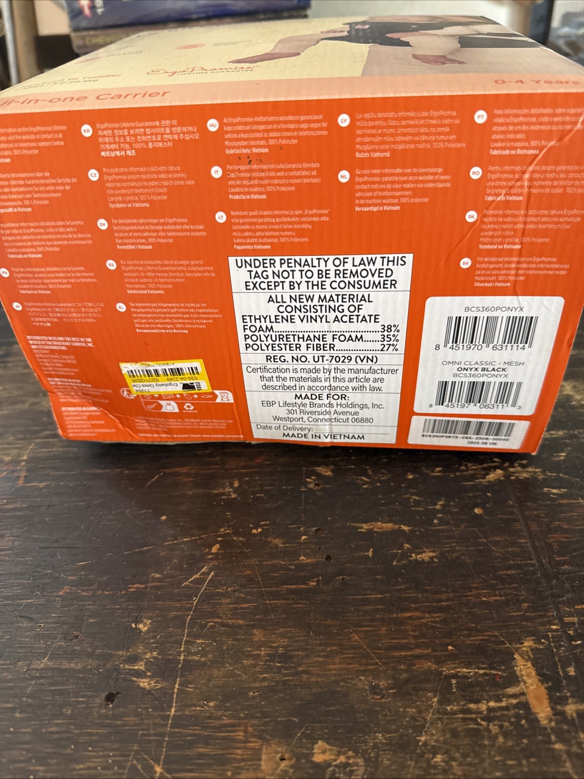 Ergobaby Omni 360 Cool Air Mesh Baby Carrier 7lbs - 45lbs New Onyx Black