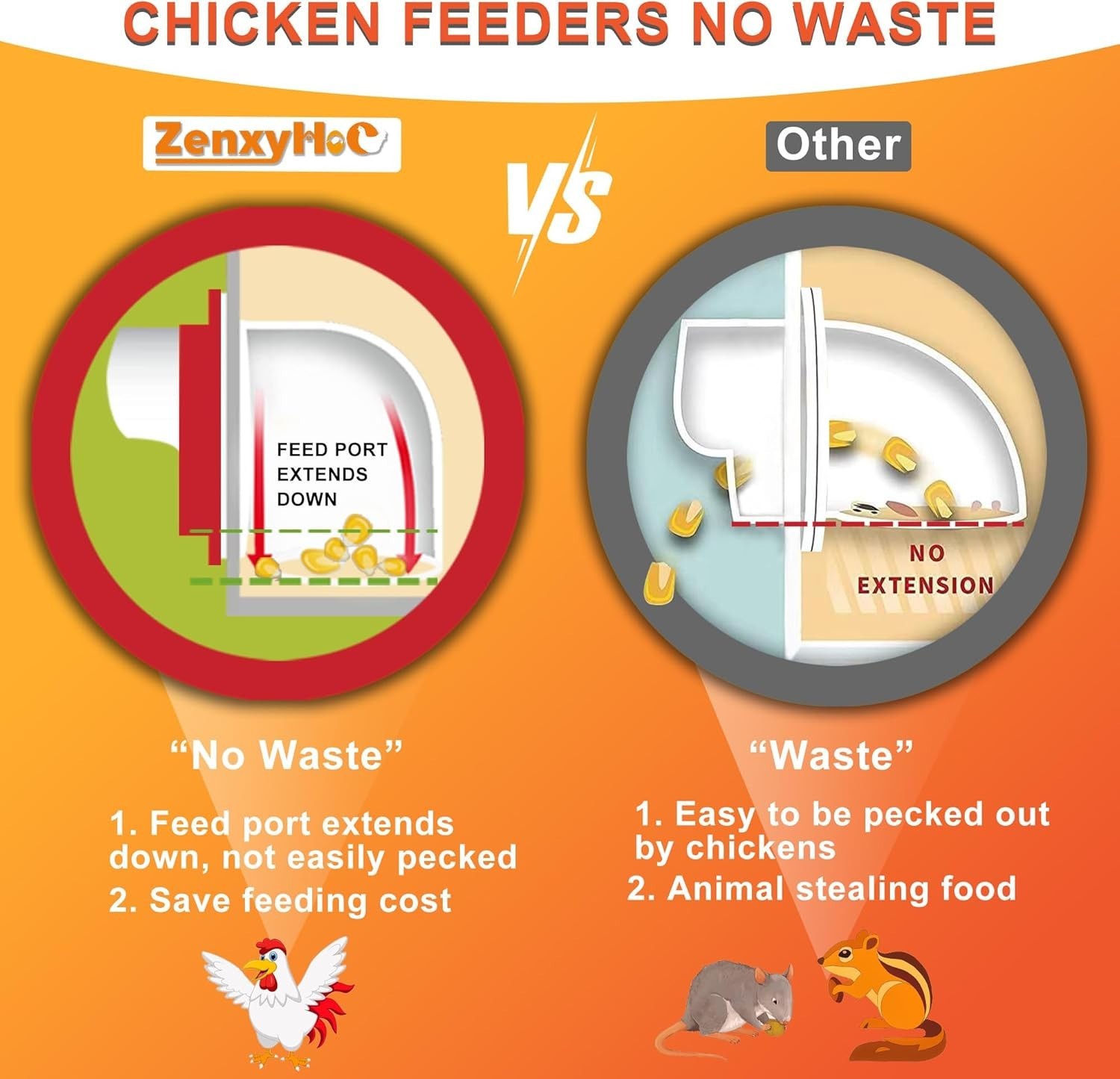 Chicken Feeders No Waste, DIY Automatic Poultry Feeder 6 Ports 1 Hole Saw wit...