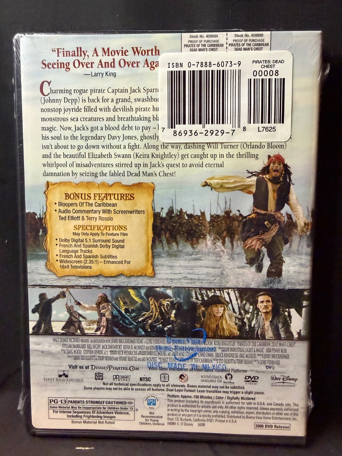 Pirates Of The Caribbean Dead Man's Chest DVD W/ Bonus Pin New Sealed PG-13